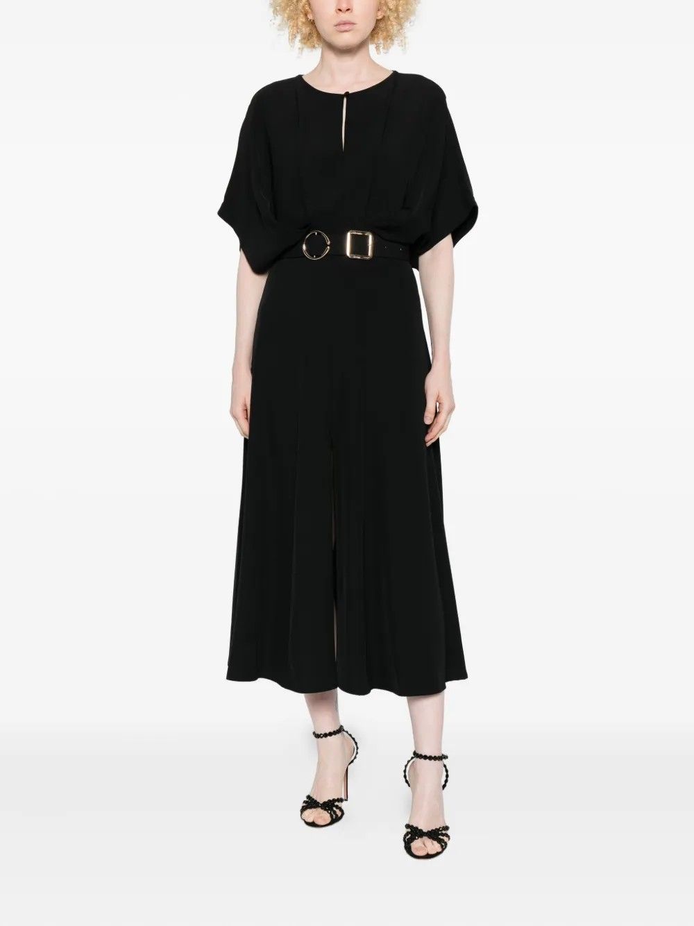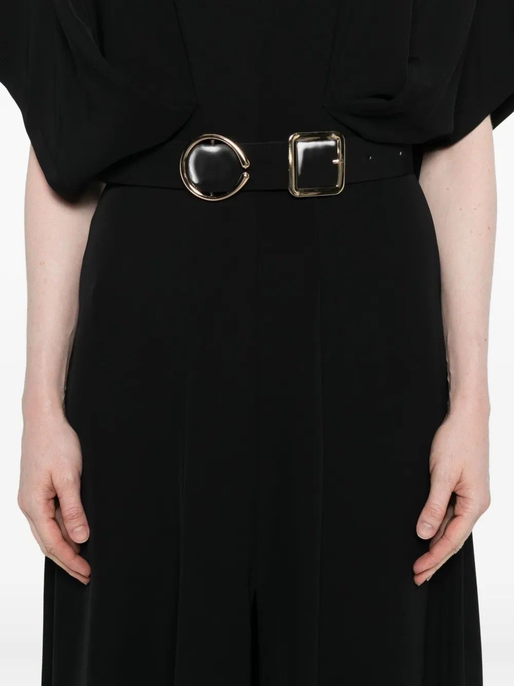 Scopri l'eleganza senza tempo con questo abito firmato Imperial. Perfetto per occasioni raffinate, vi accompagnerà con stile e classe. Il design fluido e sofisticato è accentuato dalla cintura decorativa, che valorizza la figura con grazia.