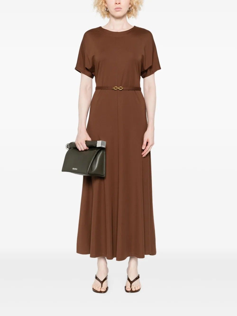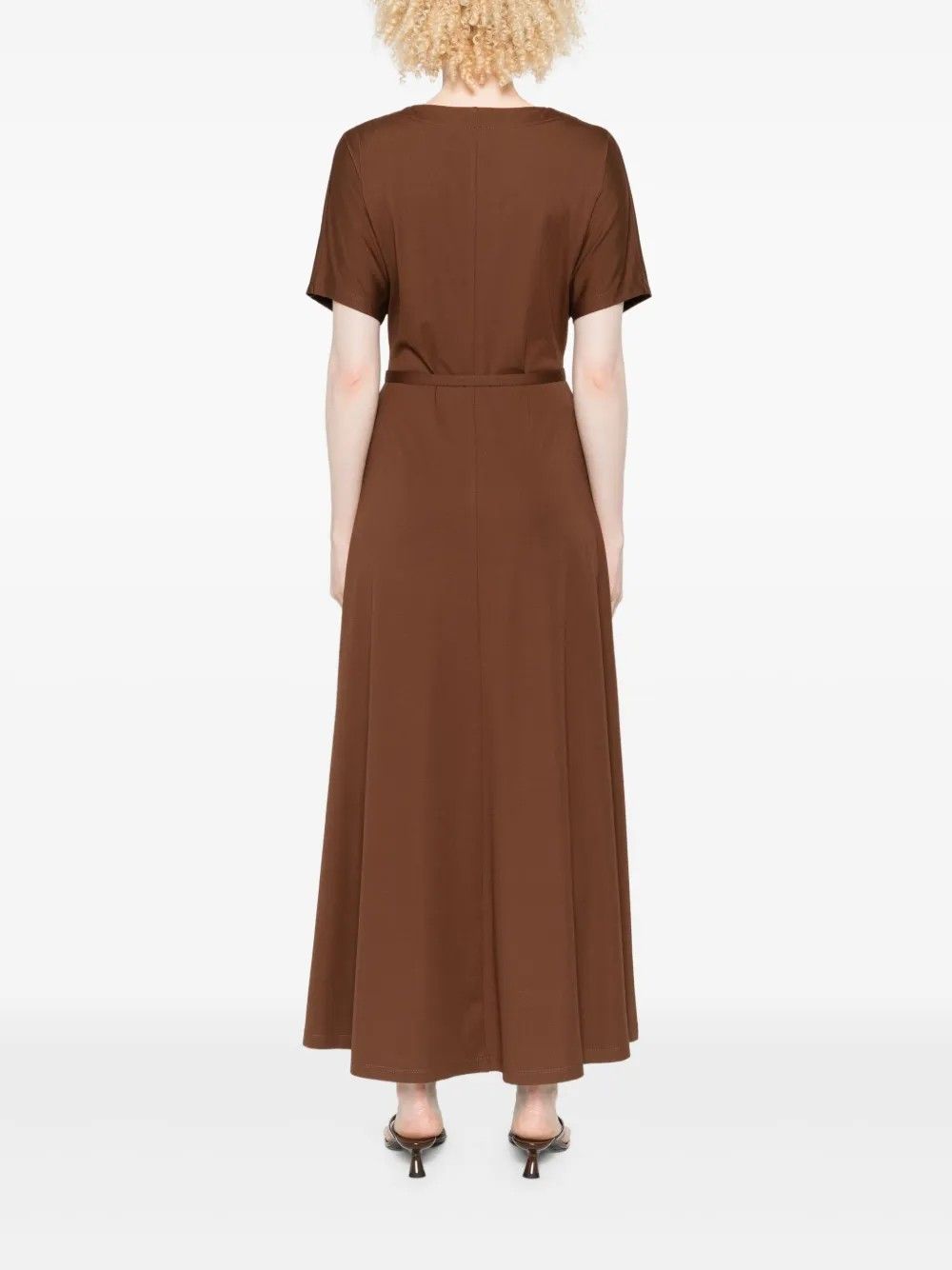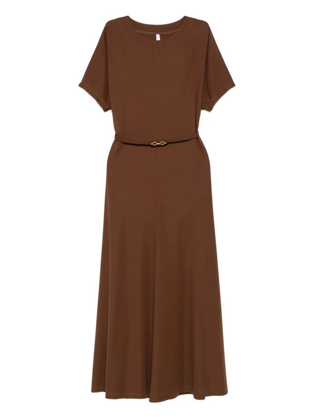 Scopri l'eleganza senza tempo del vestito Imperial, perfetto per ogni occasione. Questo capo marrone è dotato di una cintura sottile che esalta la silhouette.