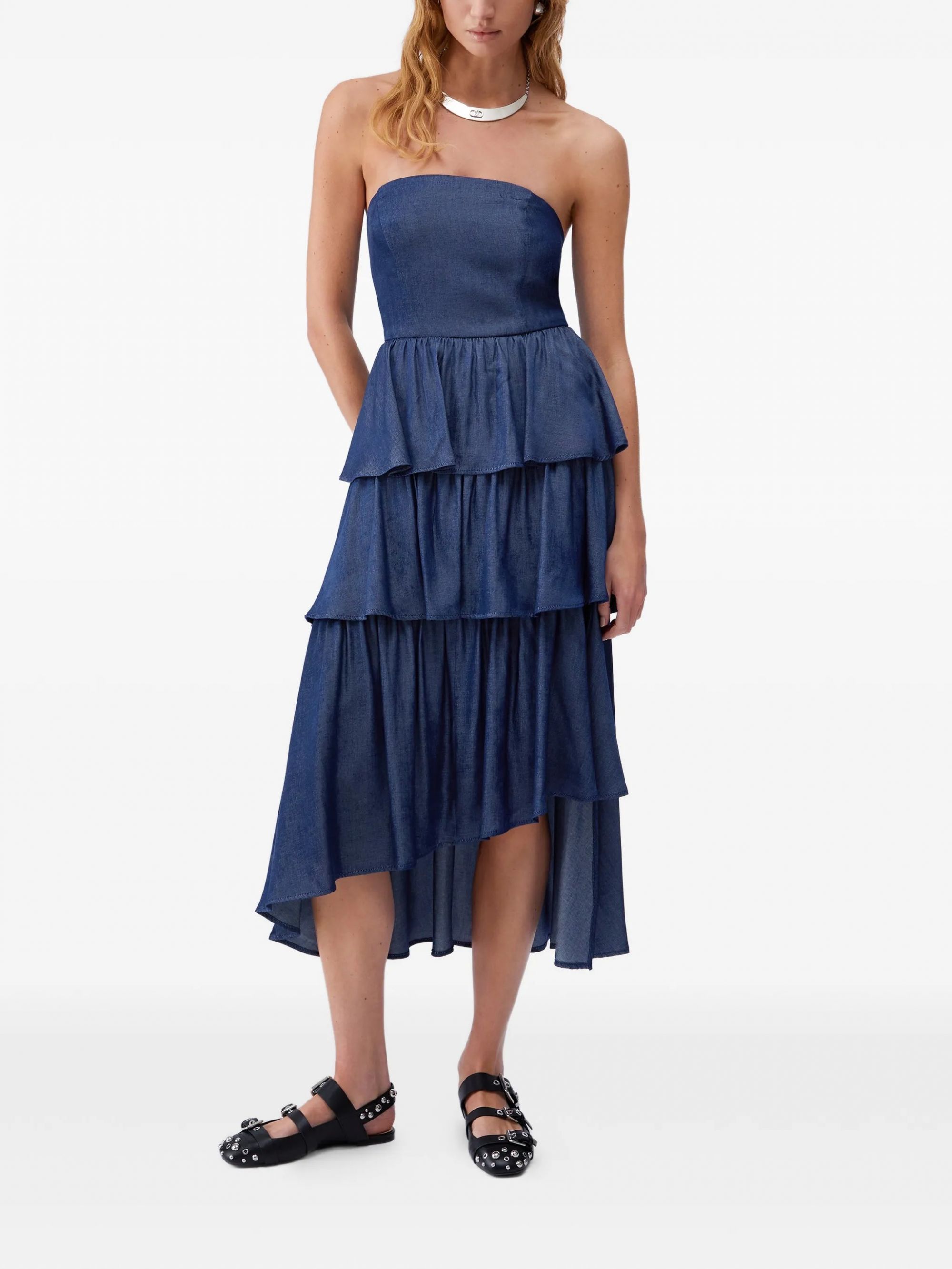 Perfetto per chi cerca un look chic e sofisticato. Il taglio senza spalline e la cintura in vita valorizzano la silhouette, rendendolo un must-have del guardaroba femminile.