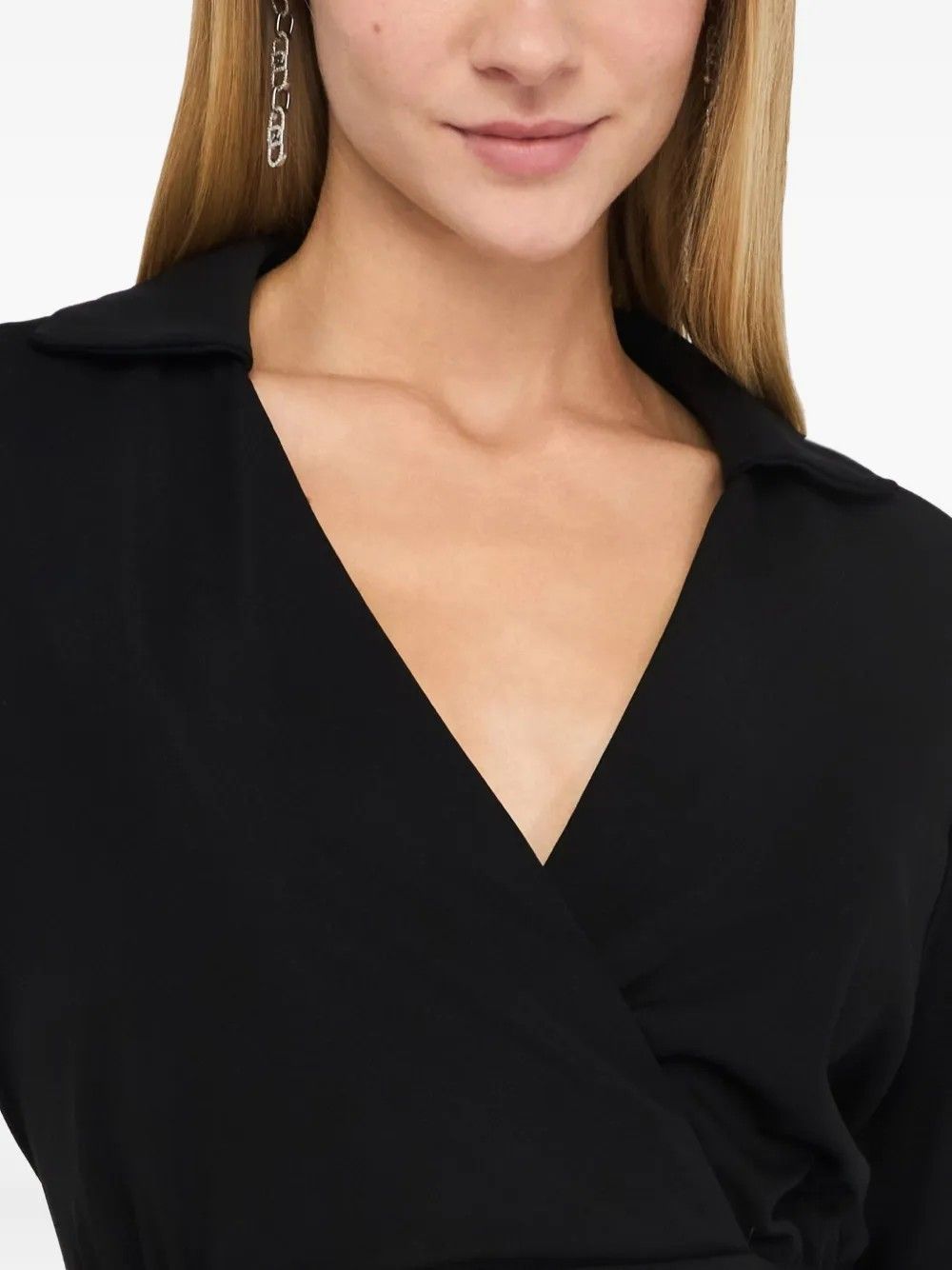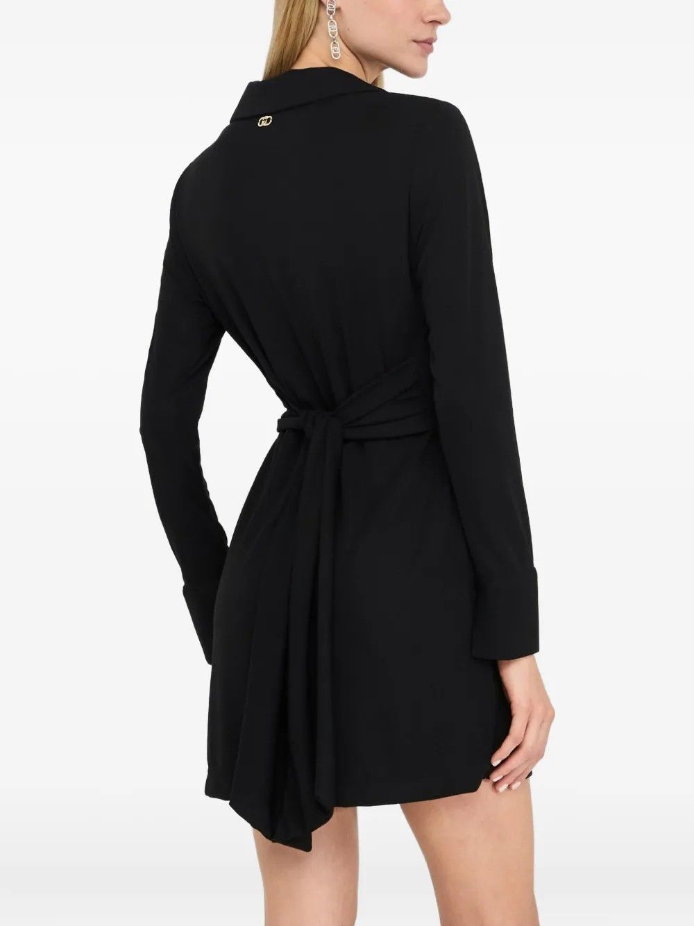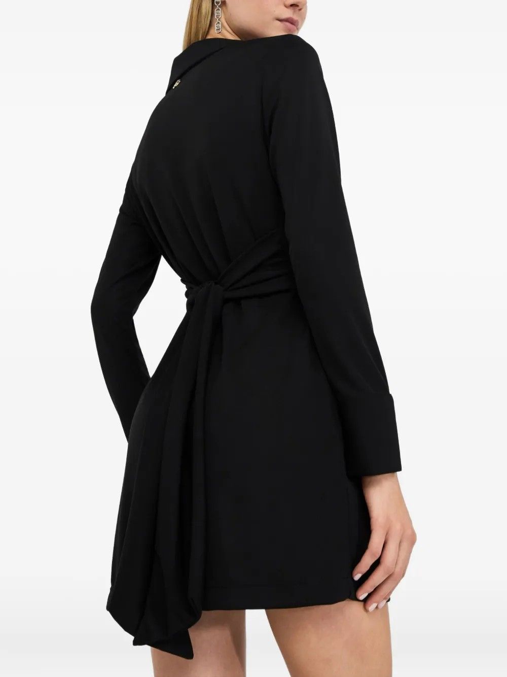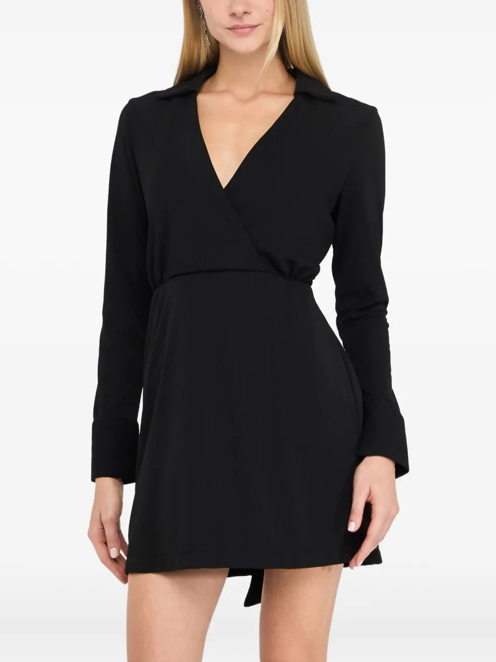 Mini dress in jersey stretch con scollo a V incrociato per una silhouette femminile e avvolgente.Maniche lunghe ed elastico sul retro in vita per un fit comodo e definito.Cintura tono su tono inclusa per completare il look con eleganza.Logo in metallo applicato sul retro come firma discreta del brand.Un capo versatile, perfetto dal giorno alla sera.