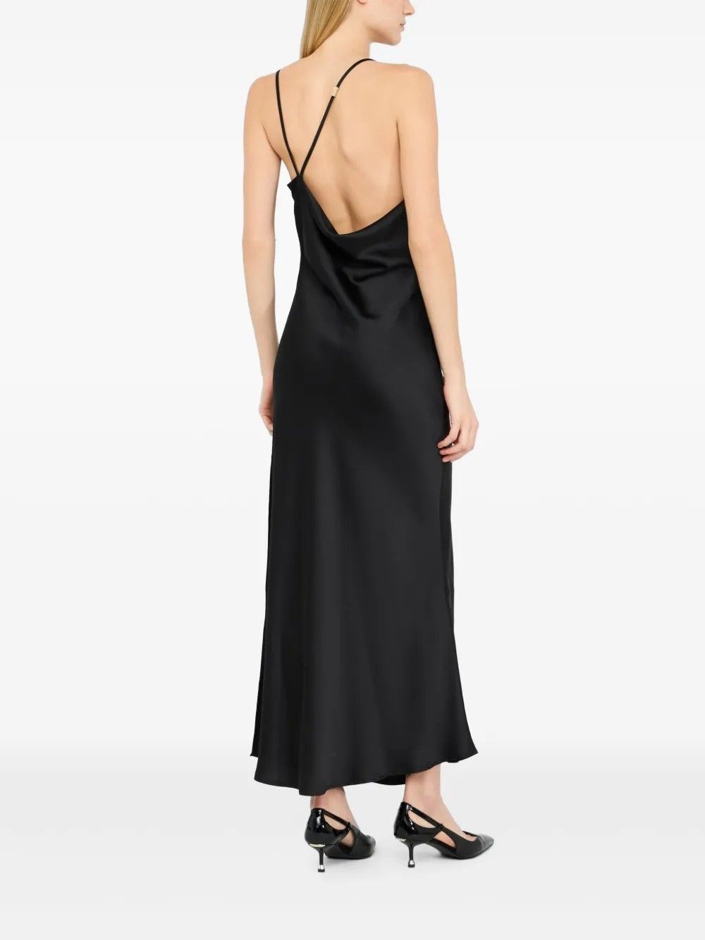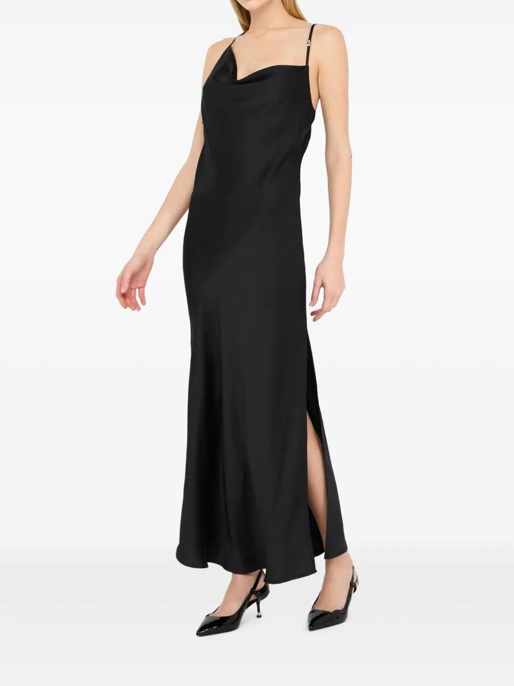 Abito lungo dal design elegante che avvolge la figura valorizzandone le linee con raffinatezza.Schiena scoperta e profonda scollatura per un effetto sensuale e sofisticato.Perfetto per occasioni serali dove lo stile diventa protagonista.Decorazioni sulle spalline aggiungono un tocco luminoso ed espressivo.Realizzato in 100% poliestere per una vestibilità fluida e confortevole.Un capo iconico della collezione pensato per chi ama distinguersi.