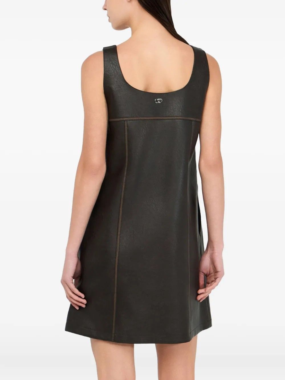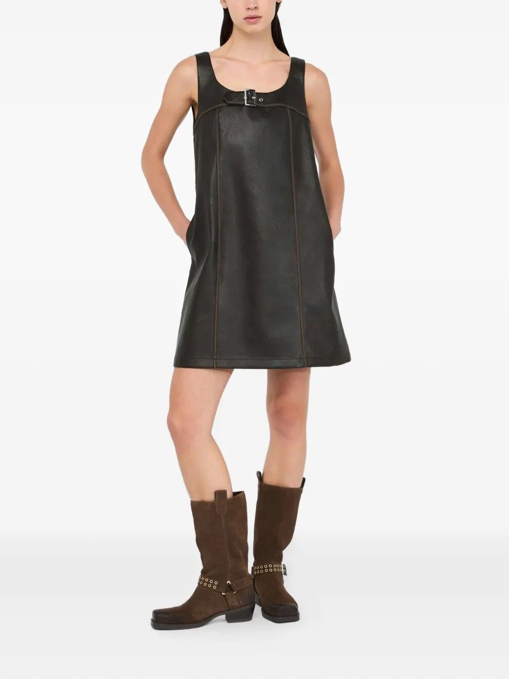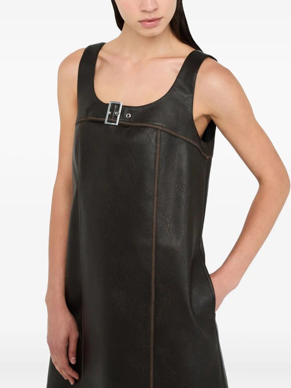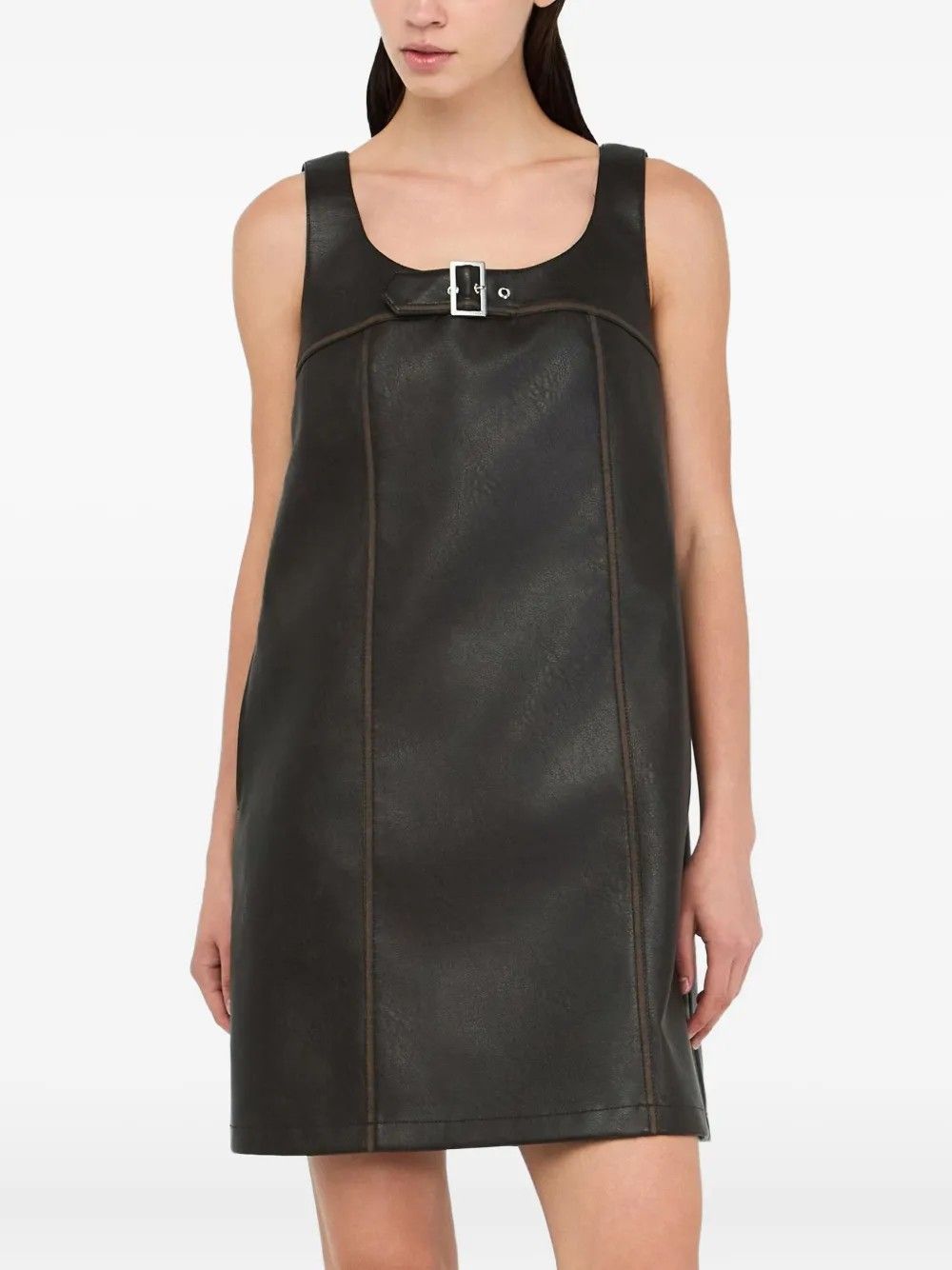 Abito corto in tessuto spalmato con spalline larghe per un sostegno confortevole. Scollo ampio e fibbia decorativa aggiungono carattere al design. Chiusura laterale con zip per una vestibilità perfetta. Linee essenziali e moderne, ideale per occasioni casual o serali. Un capo versatile e di tendenza per un look contemporaneo.
