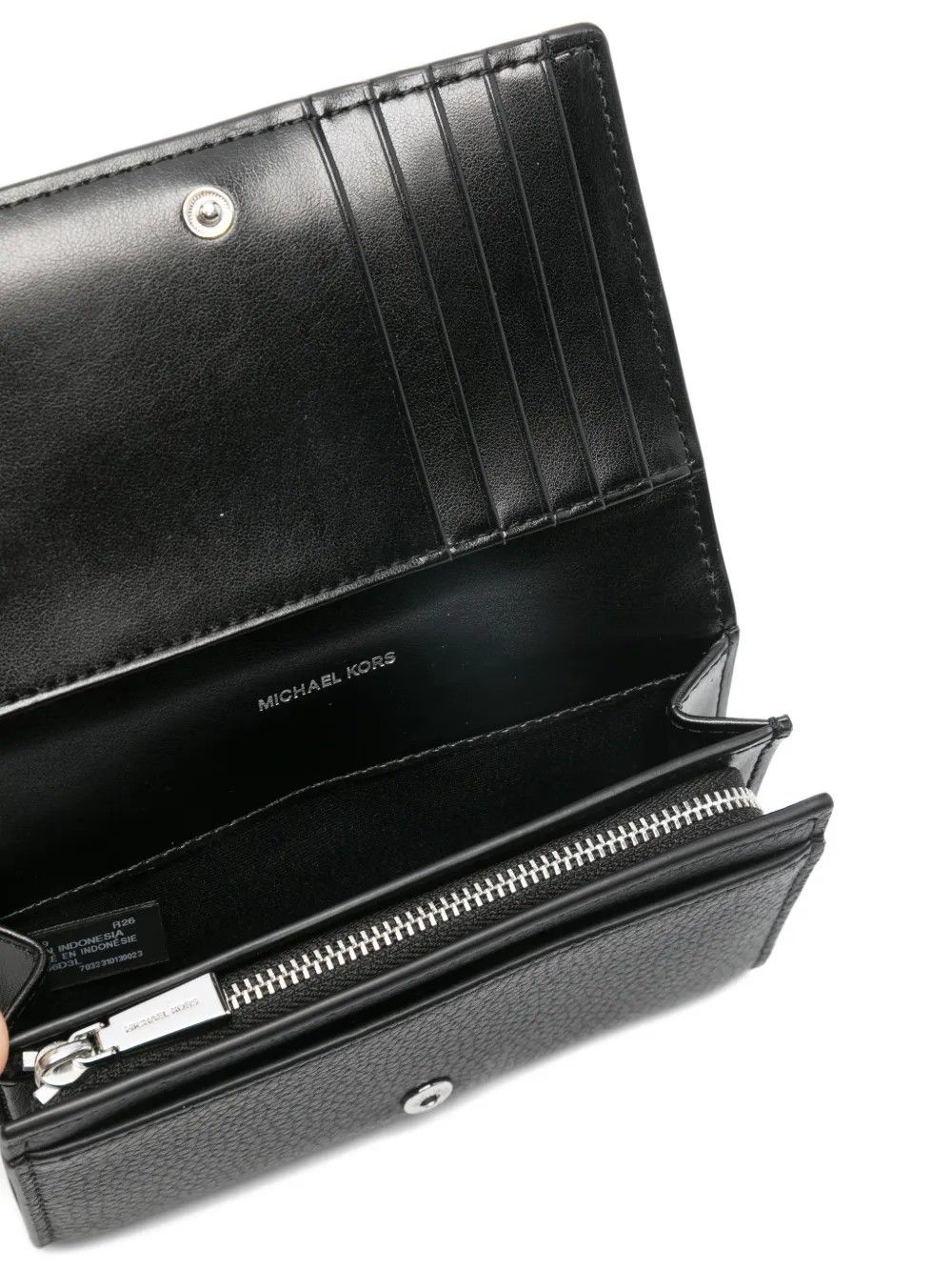 Scopri il raffinato portafogli Michael Kors, perfetto per organizzare i tuoi effetti personali con stile. Questo accessorio è realizzato con cura in pelle granulata di alta qualità.