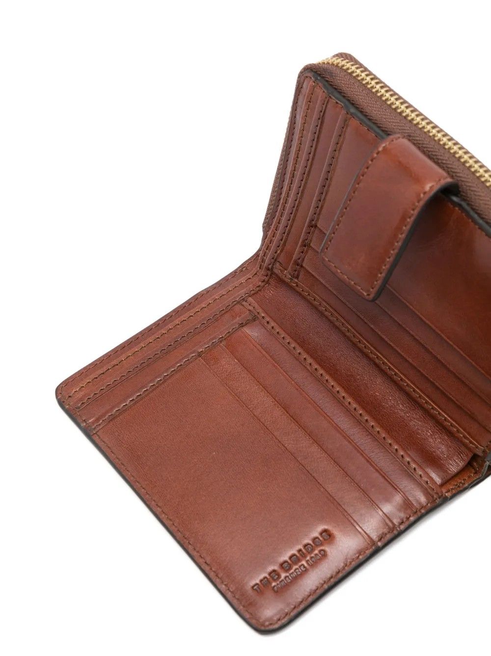 Portafoglio in vera pelle con design compatto e funzionale.Chiusura con zip all around e bottone magnetico per massima sicurezza.Interno organizzato con due scomparti principali e otto portatessere.Presenti anche due spazi dedicati alle banconote per una gestione ordinata.Fodera interna in tessuto resistente per una maggiore durata.Dimensioni 13 x 10 x 3 cm perfette per l’uso quotidiano.