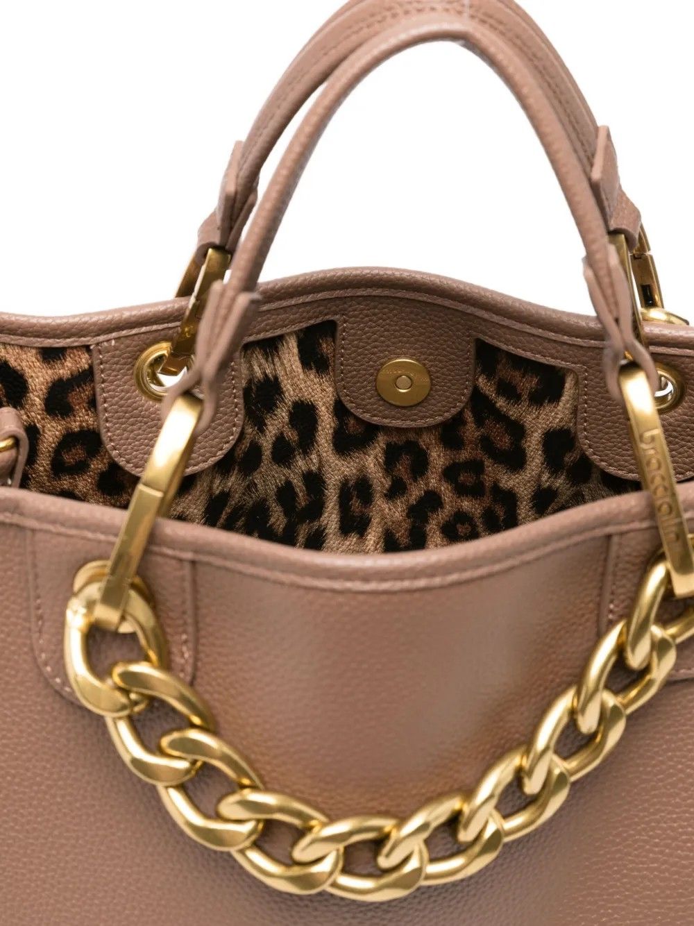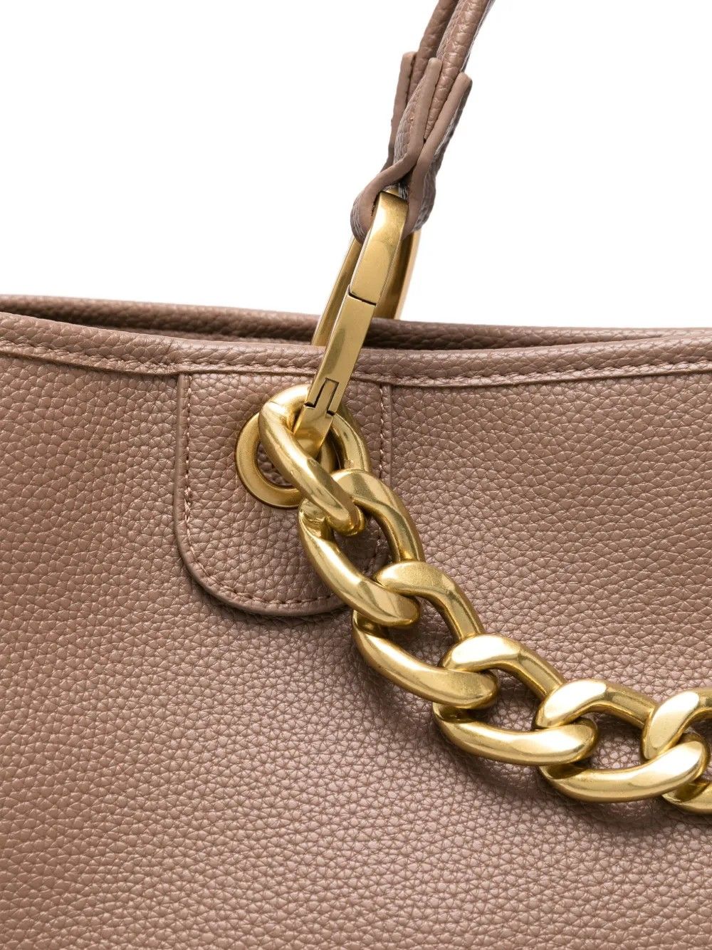Ideale per ogni occasione, questa borsa offre ampio spazio interno per tutti i tuoi essenziali. Il design con manico a catena e tracolla removibile aggiunge versatilità, permettendoti di portarla a mano o a spalla.