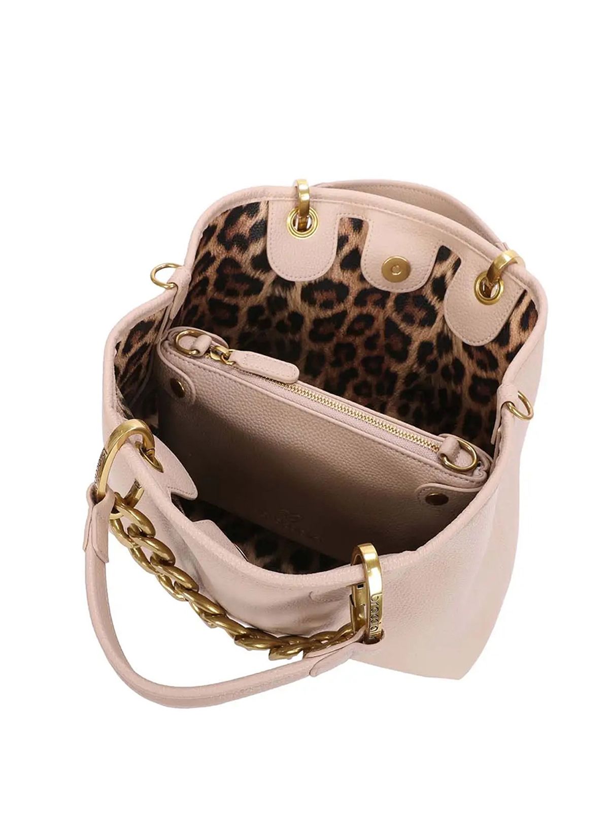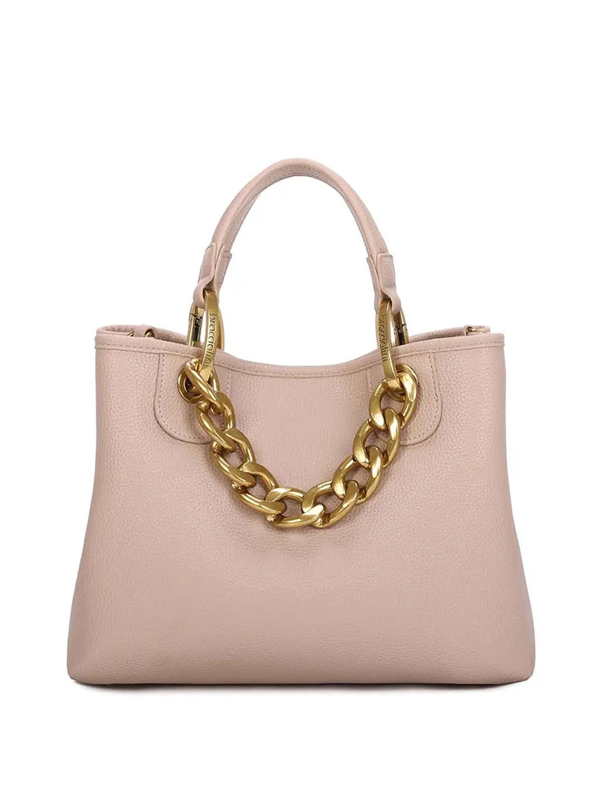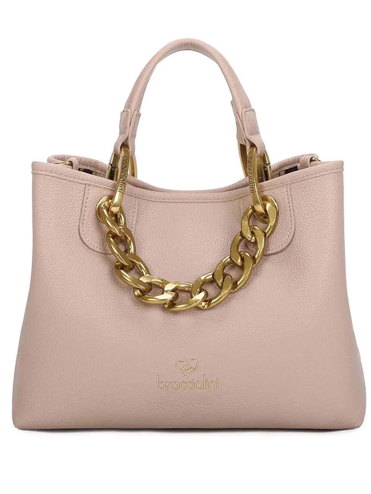 Borsa a mano Braccialini di medie dimensioni con doppi manici e tracolla logata removibile.Design elegante arricchito da catena dorata con maxi maglie per un tocco glamour.Pochette interna estraibile utilizzabile anche come seconda borsa.Struttura versatile pensata per una doppia portabilità quotidiana.Materiali di qualità e dettagli curati per uno stile distintivo.Misure: 28x21x13 cm.