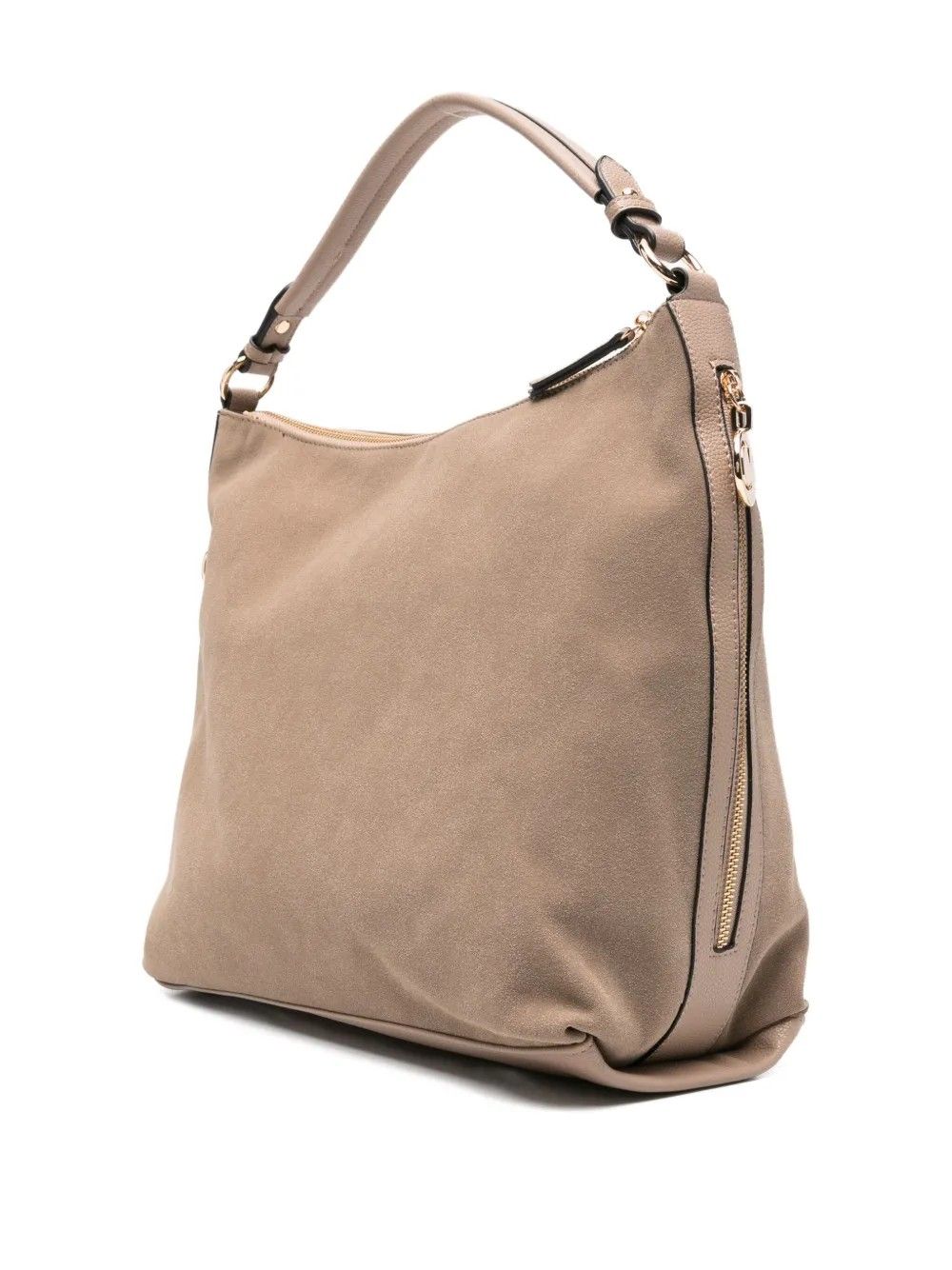 La sacca morbida in effetto suede si distingue per la chiusura a zip con charm e il lettering in metallo che ne impreziosiscono il design. La tracolla removibile offre versatilità, permettendo di adattare il modello a diversi stili. Perfetta per arricchire gli outfit quotidiani con un tocco boho-chic, unisce praticità e raffinatezza in un unico accessorio.