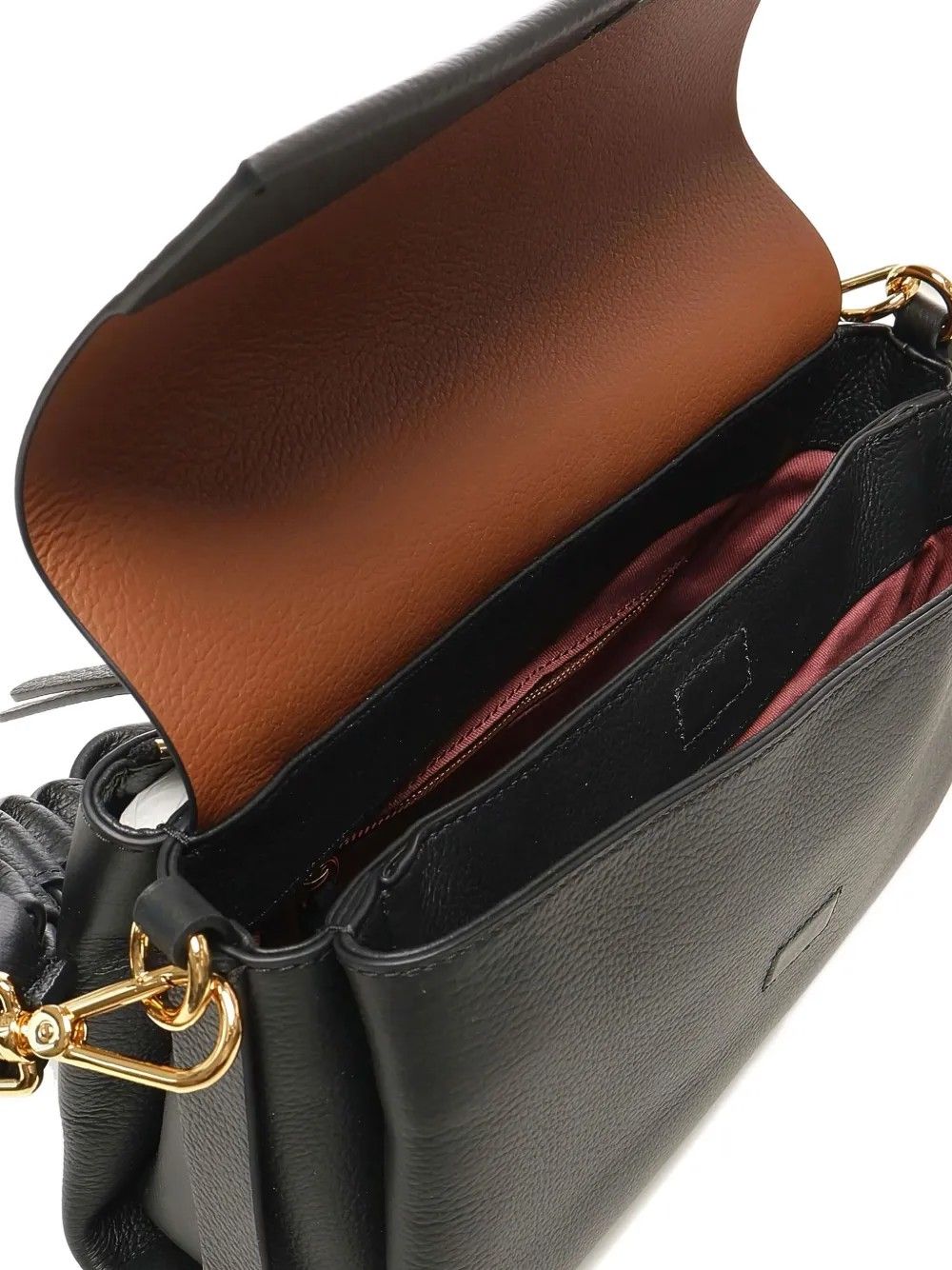 Borsa a spalla in pelle di vacchetta con grana naturale e finiture in metallo dorato lucido.Dotata di manico removibile e tracolla regolabile per un uso versatile in ogni occasione.Tasca con zip sul retro e interno organizzato con scomparti e fodera in cotone chiaro.Chiusura a calamita per un accesso pratico e sicuro ai propri effetti personali.Dimensioni compatte 27×16×8 cm perfette per l’uso quotidiano con stile.Eleganza sobria e funzionalità firmate Coccinelle.