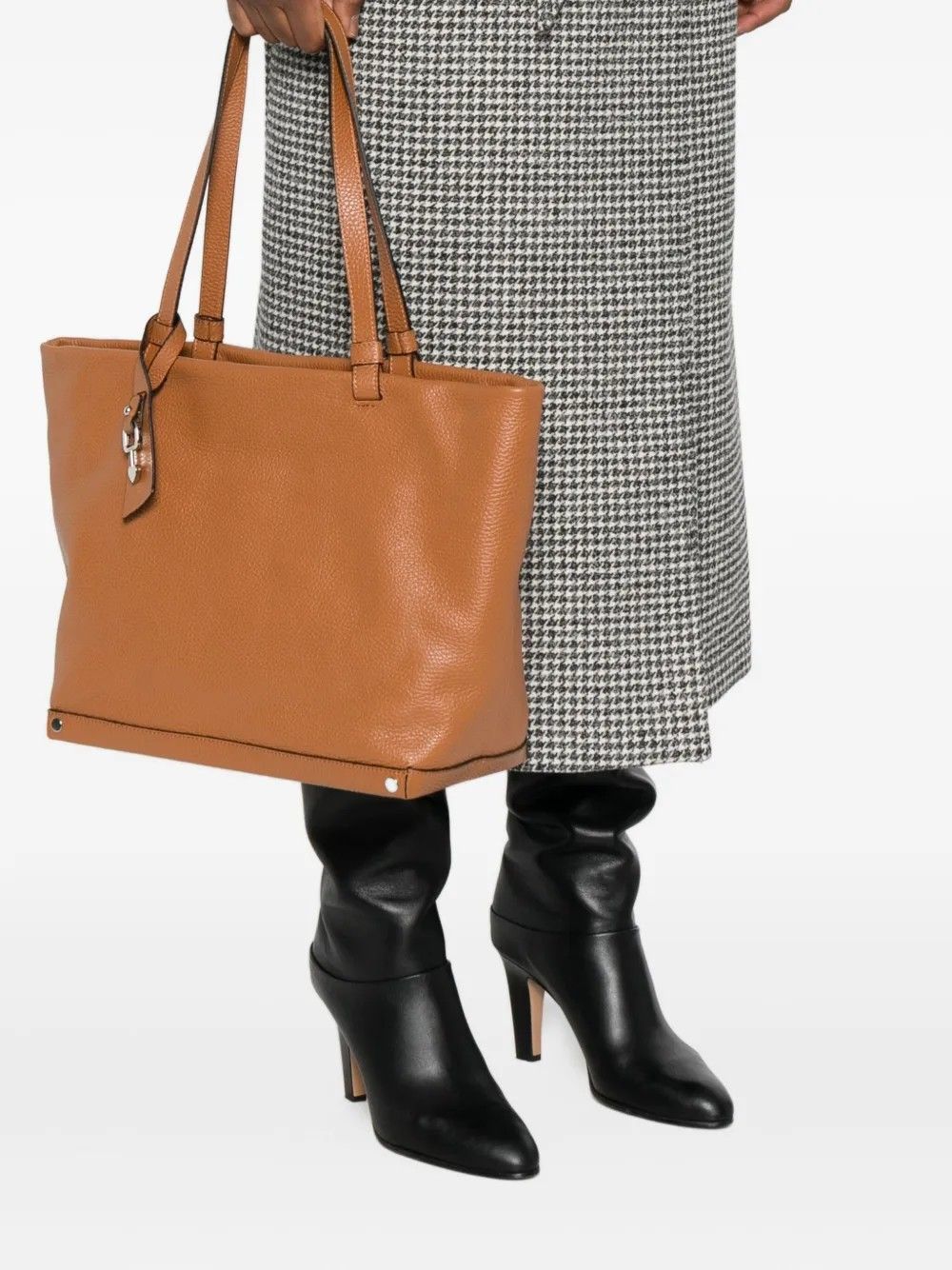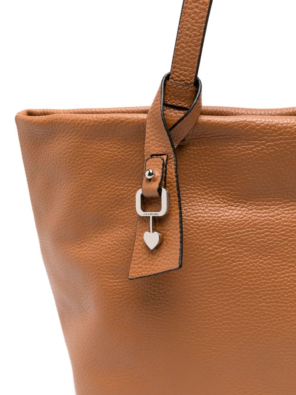 La borsa tote è realizzata in pelle di vitello con un design strutturato ed essenziale, arricchito da un doppio manico per una portabilità confortevole.La chiusura con zip garantisce praticità e sicurezza nell’uso quotidiano,mentre il ciondolo a cuore in metallo dona un dettaglio femminile e distintivo.Il modello si distingue per l’equilibrio tra funzionalità e stile,perfetto in ogni occasione.