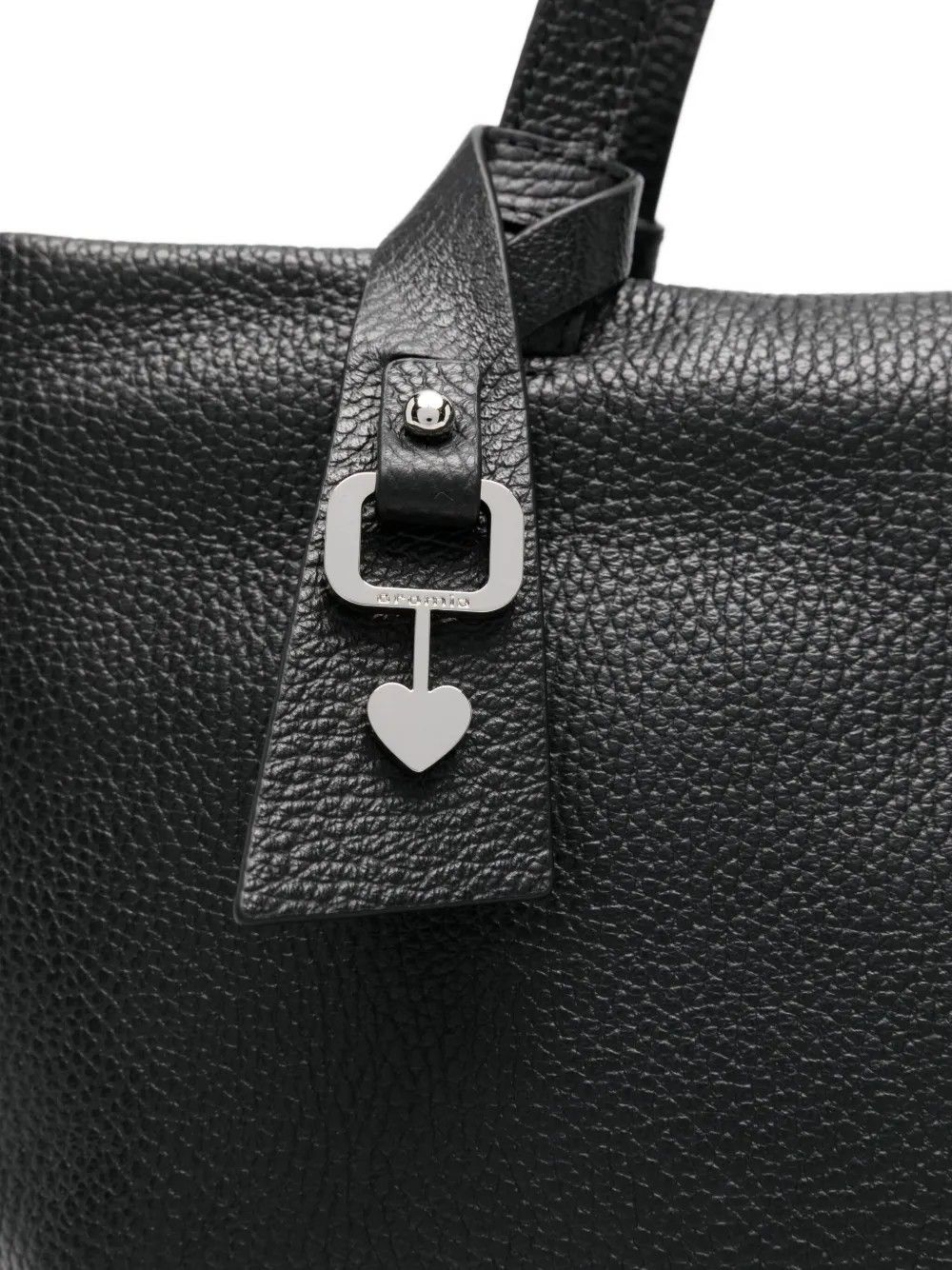 La borsa tote è realizzata in pelle di vitello con un design strutturato ed essenziale, arricchito da un doppio manico per una portabilità confortevole.La chiusura con zip garantisce praticità e sicurezza nell’uso quotidiano,mentre il ciondolo a cuore in metallo dona un dettaglio femminile e distintivo.Il modello si distingue per l’equilibrio tra funzionalità e stile,perfetto in ogni occasione.