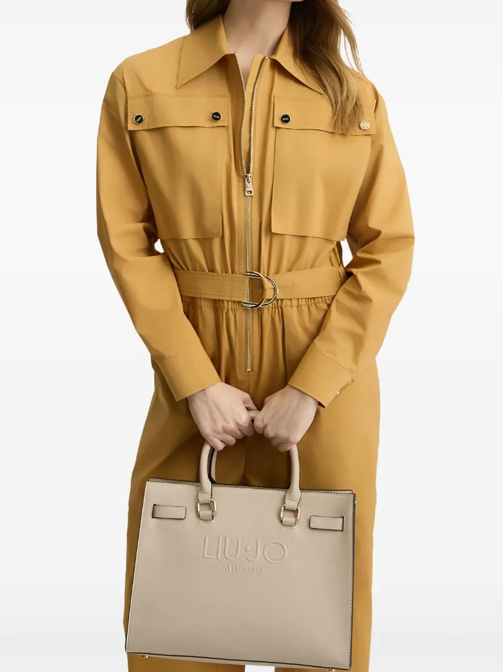 Borsa tote modello shopper con design versatile portabile a mano o a tracolla.Realizzata in poliestere resistente con logo in rilievo sul lato frontale.Chiusura con zip per proteggere gli effetti personali durante gli spostamenti.Due tasche interne permettono di organizzare gli oggetti essenziali.Ideale per un utilizzo quotidiano tra stile e funzionalità .Dimensioni 32x24x16 cm.