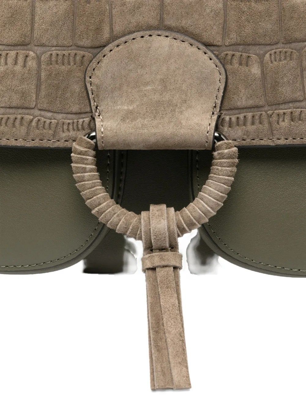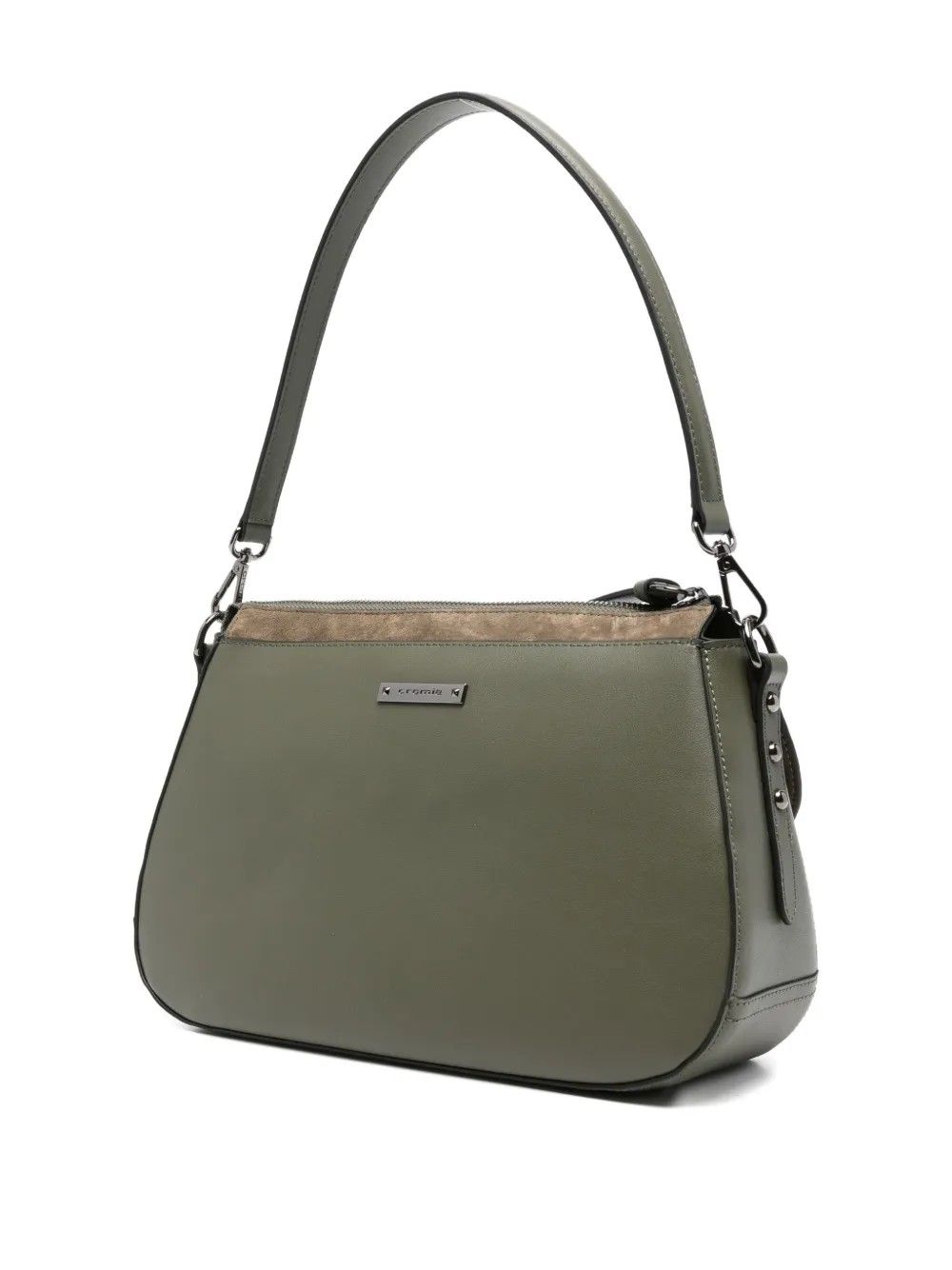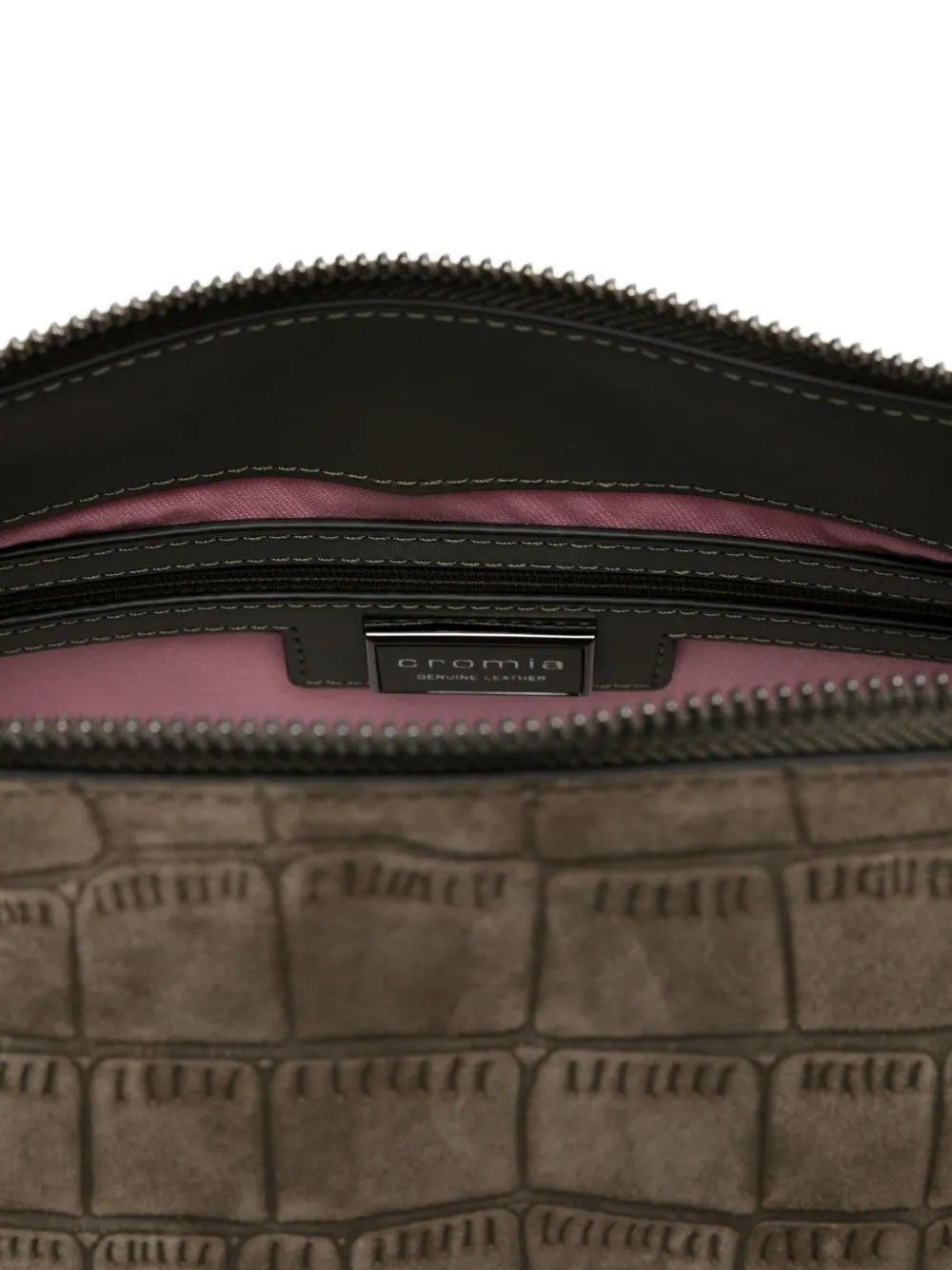 La borsa a spalla Ermione è realizzata in pelle di vitello goffrata con effetto coccodrillo e inserti in pelle scamosciata che creano un raffinato contrasto materico.Il dettaglio con nappine aggiunge movimento al design mentre la chiusura con zip garantisce sicurezza e funzionalità.La combinazione di texture e la cura nelle finiture rendono il modello sofisticato e distintivo,perfetto per uno stile ricercato.