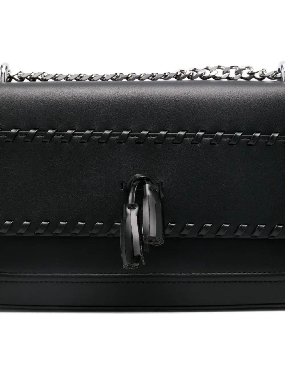 La borsa a tracolla in pelle presenta un design essenziale con battente superiore dotato di chiusura magnetica per un accesso rapido e sicuro.Il dettaglio a catena aggiunge un tocco di carattere e stile moderno.Lo scomparto unico offre praticitĂ e spazio ottimizzato.Realizzata in pelle 100%, unisce qualitĂ e versatilitĂ per ogni occasione.