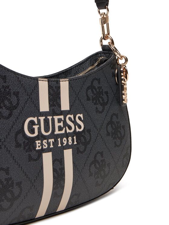 La borsa Guess Noelle è realizzata in similpelle con chiusura a cerniera lampo e dettagli in metalleria color oro pallido.La stampa 4G logo e la fascia frontale a contrasto donano carattere al design.Il charm logato removibile aggiunge un tocco raffinato, mentre la tasca posteriore con zip garantisce praticità.Il logo frontale completa l’estetica elegante e moderna.Le dimensioni 29x18x6 cm la rendono versatile e funzionale per ogni occasione.