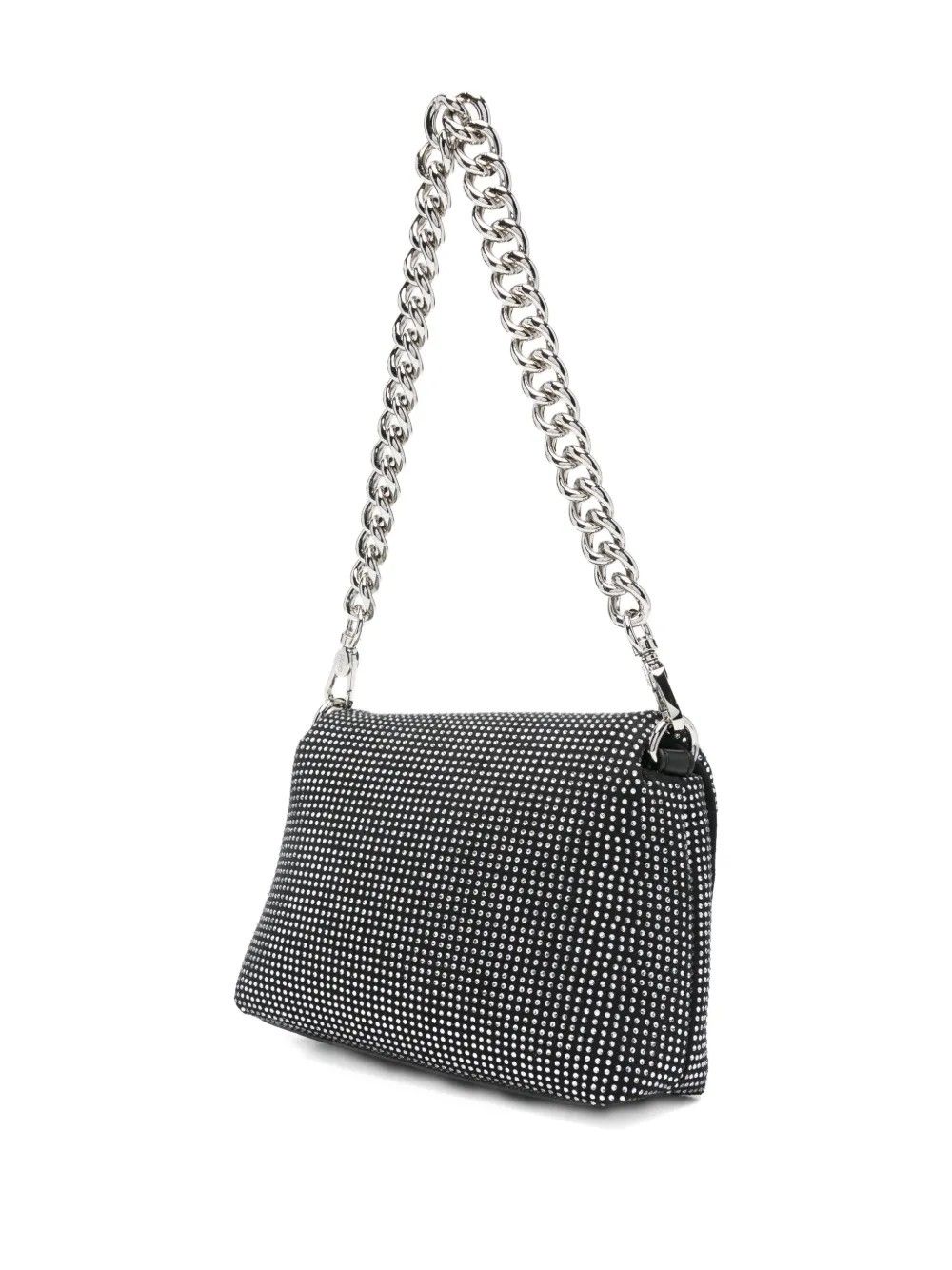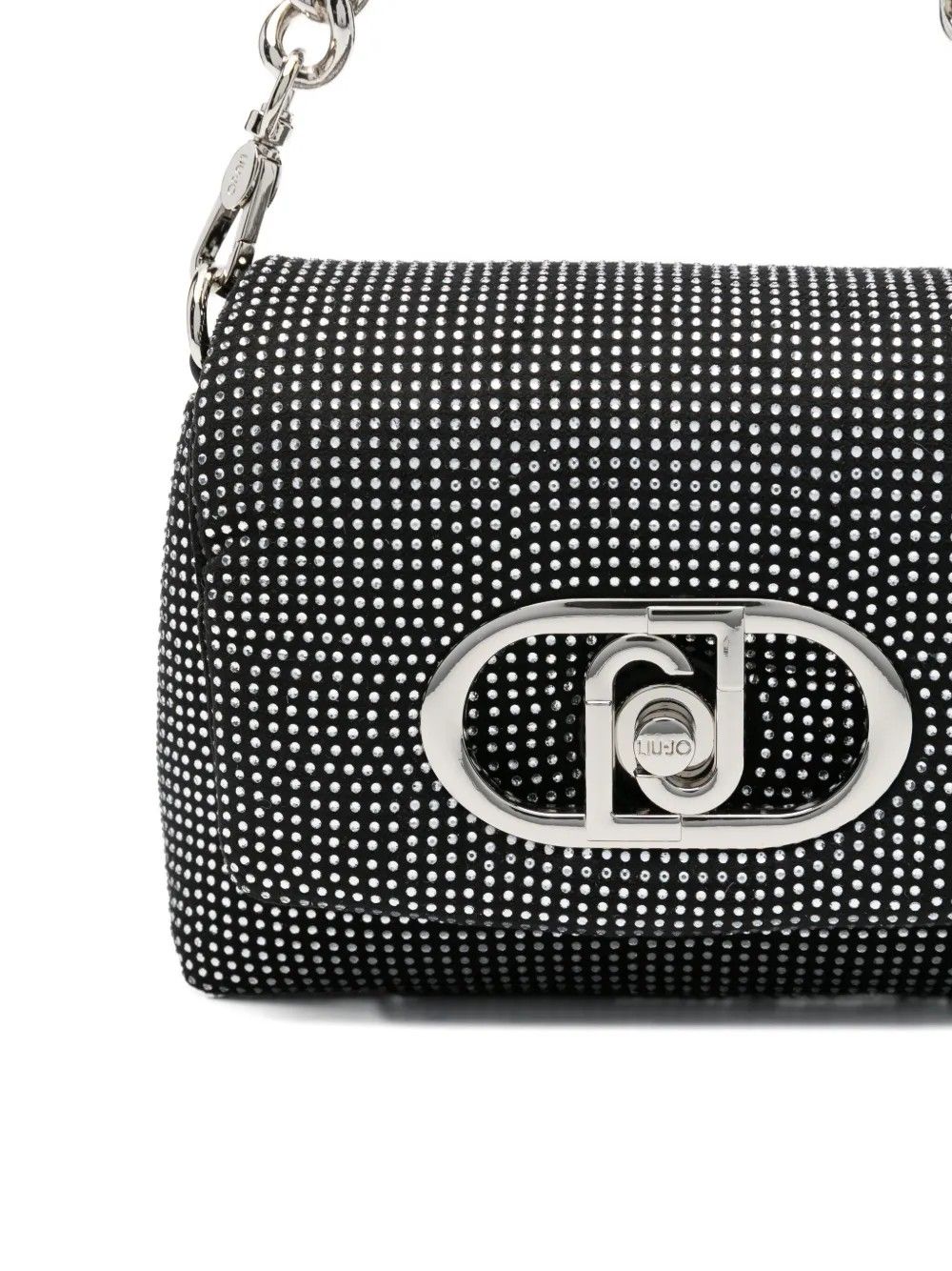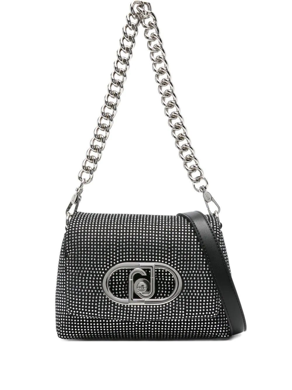 Borsa Liu Jo con design completamente decorato da strass e chiusura a patta.Dotata di logo metallico frontale, manico a catena removibile e tracolla regolabile e rimovibile.Interno con tasca e fodera completa.PuĂ² essere indossata a mano, a spalla o a tracolla.Dimensioni 19 x 6 x 13 cm, un accessorio brillante e versatile per ogni occasione.