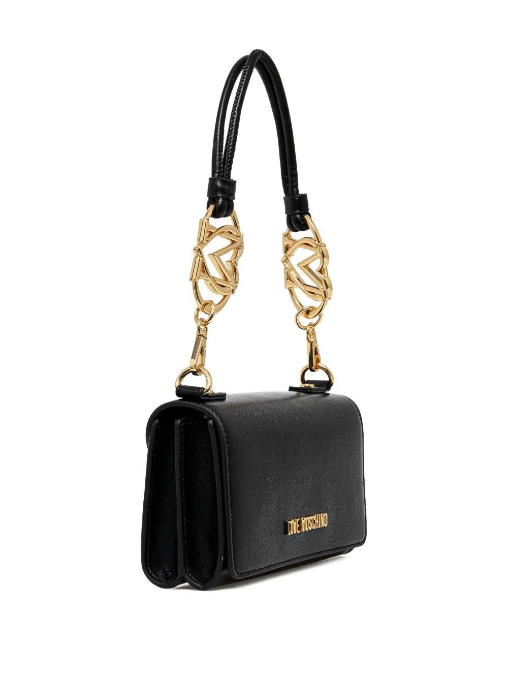 Borsa a spalla Love Moschino Jewel dal design femminile e deciso.Linee rettangolari valorizzate da dettagli a catena color oro.Manico singolo per una portabilità pratica e raffinata.Chiusura con patta che completa il look con eleganza.Logo frontale che aggiunge una firma iconica.Realizzata in materiale resistente, ideale per ogni occasione.