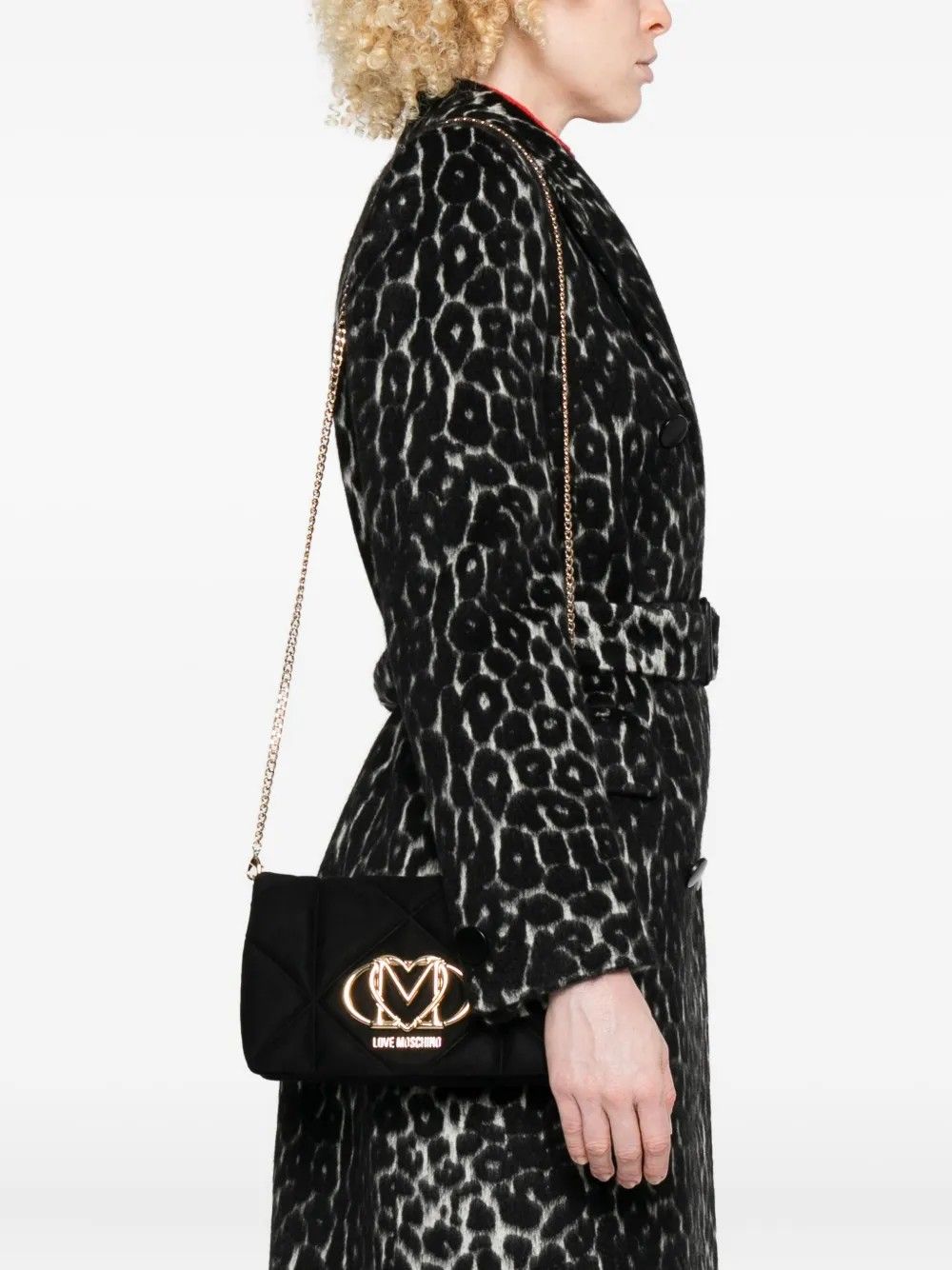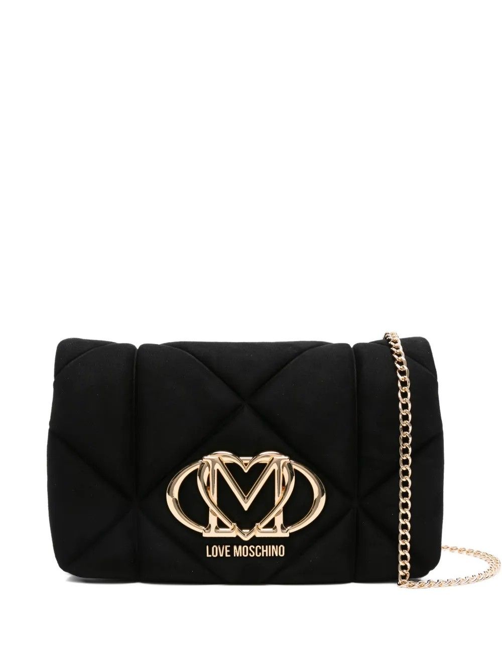 Piccola borsa a tracolla Love Moschino realizzata in materiale liscio senza motivo, caratterizzata da un design trapuntato e chiusura con patella magnetica.Due compartimenti interni, di cui uno con tasca scorrevole per riporre in sicurezza telefono e piccoli oggetti.La tracolla staccabile non regolabile consente versatilità nell’uso.La borsa è foderata e corredata da una custodia tessile protettiva.Non compatibile con formato A4.Dimensioni: 24x14x5 cm, lunghezza tracolla 115 cm.