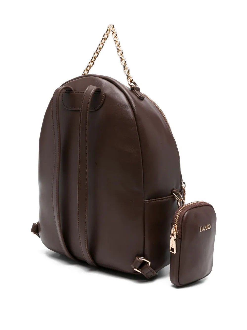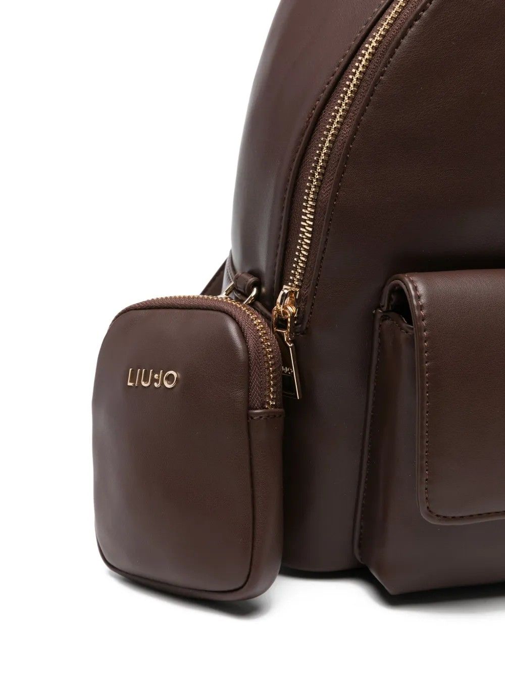 Zaino 24x30x13 cm con tasca frontale chiusa da bottone magnetico e manico singolo.Sistema dorsale a contatto con il corpo per maggiore comfort.Chiusura principale con zip e dettagli in metallo a finitura oro lucido.Scomparto principale capiente,custodia separata,tasca interna e tasca con zip.Fodera in poliestere con logo.