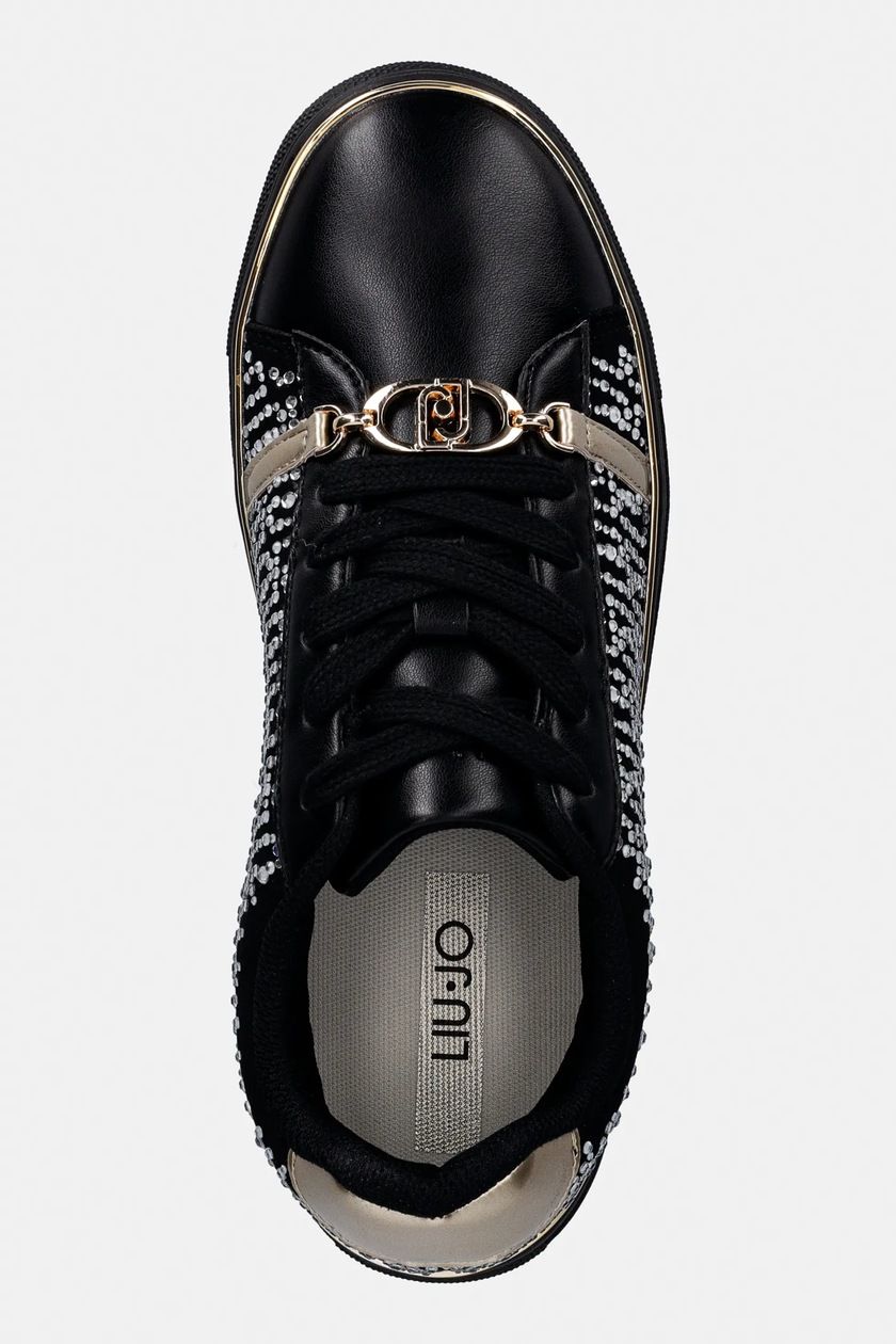 Queste sneakers Liu Jo sono perfette per chi cerca un tocco di eleganza nel casual. Il design presenta una decorazione di paillettes luminose che donano un effetto glamour, arricchita da dettagli dorati per un look raffinato. Il modello è completato da una suola piatta in gomma che assicura comfort e durata.