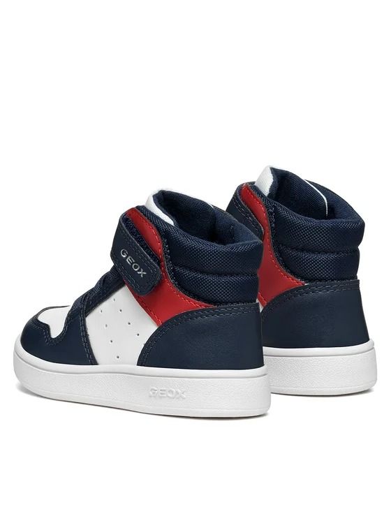 Le sneakers Geox modello J45LRA 000BC C0899 sono ideali per i più piccoli. Realizzate con materiali di alta qualità , queste scarpe sono progettate per garantire comodità e stile. La combinazione di colori blu, bianco e rosso rende queste sneakers facili da abbinare a qualsiasi outfit casual.