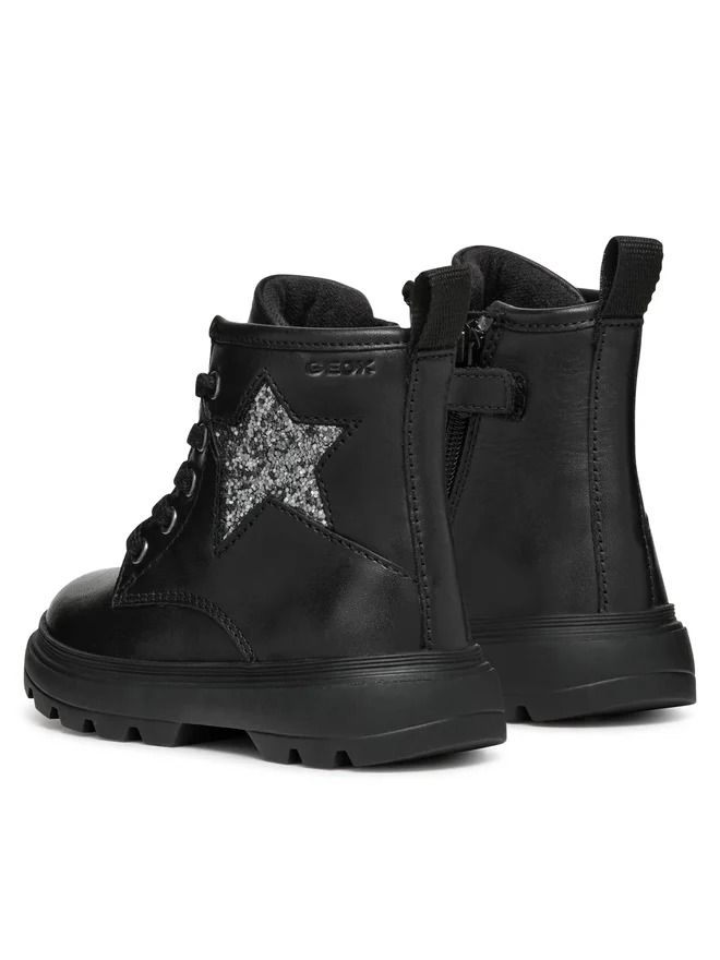 Anfibio Geox modello Kiddartah in morbida nappa, arricchito da un’applicazione a stella glitterata per un tocco di allegria.Il sistema di chiusura combina stringhe e zip interna per una calzata facile e sicura.Il sottopiede estraibile in pelle chrome-free garantisce igiene e comfort, mentre il fondo traspirante in gomma assicura stabilità e traspirabilità.Il design unisce funzionalità e stile pensato per le esigenze quotidiane delle bambine.