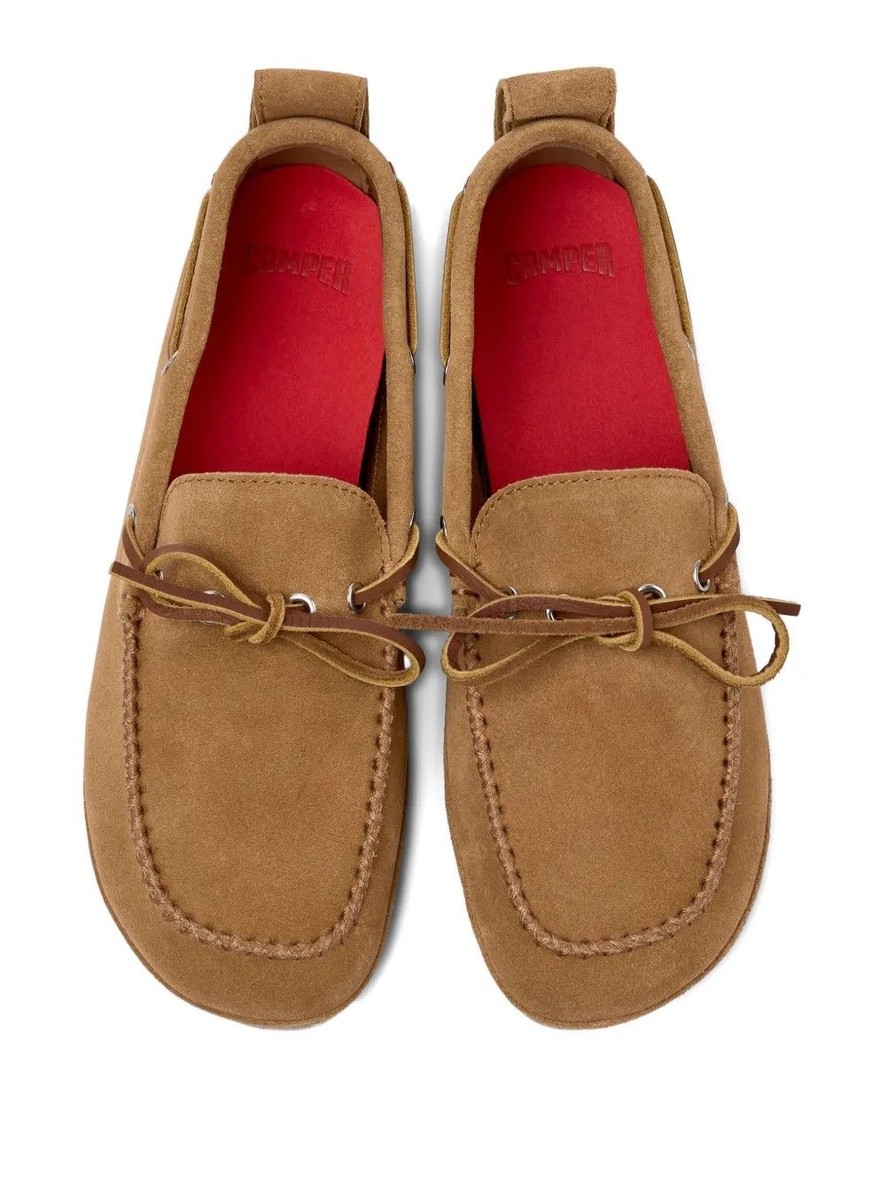 I mocassini da barca Right Nina di Camper reinterpretano un classico in chiave essenziale e confortevole.Realizzati interamente in pelle scamosciata, presentano una chiusura con lacci e una linguetta funzionale.La suola piatta in sughero naturale garantisce flessibilità e leggerezza ad ogni passo.La costruzione morbida assicura una calzata comoda e naturale.Un modello versatile, perfetto per accompagnare look informali e rilassati.