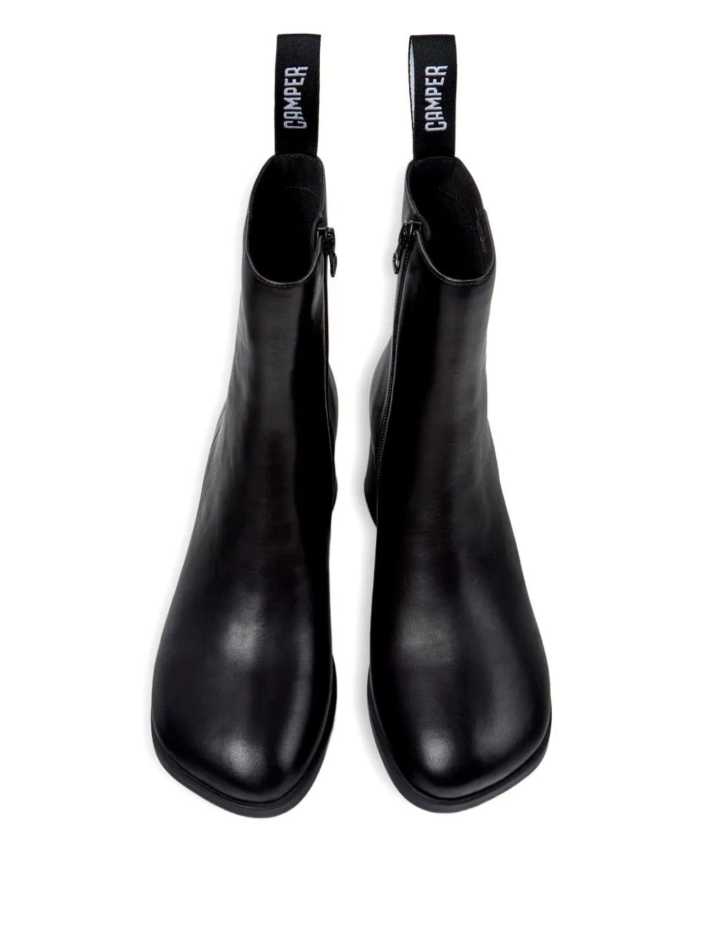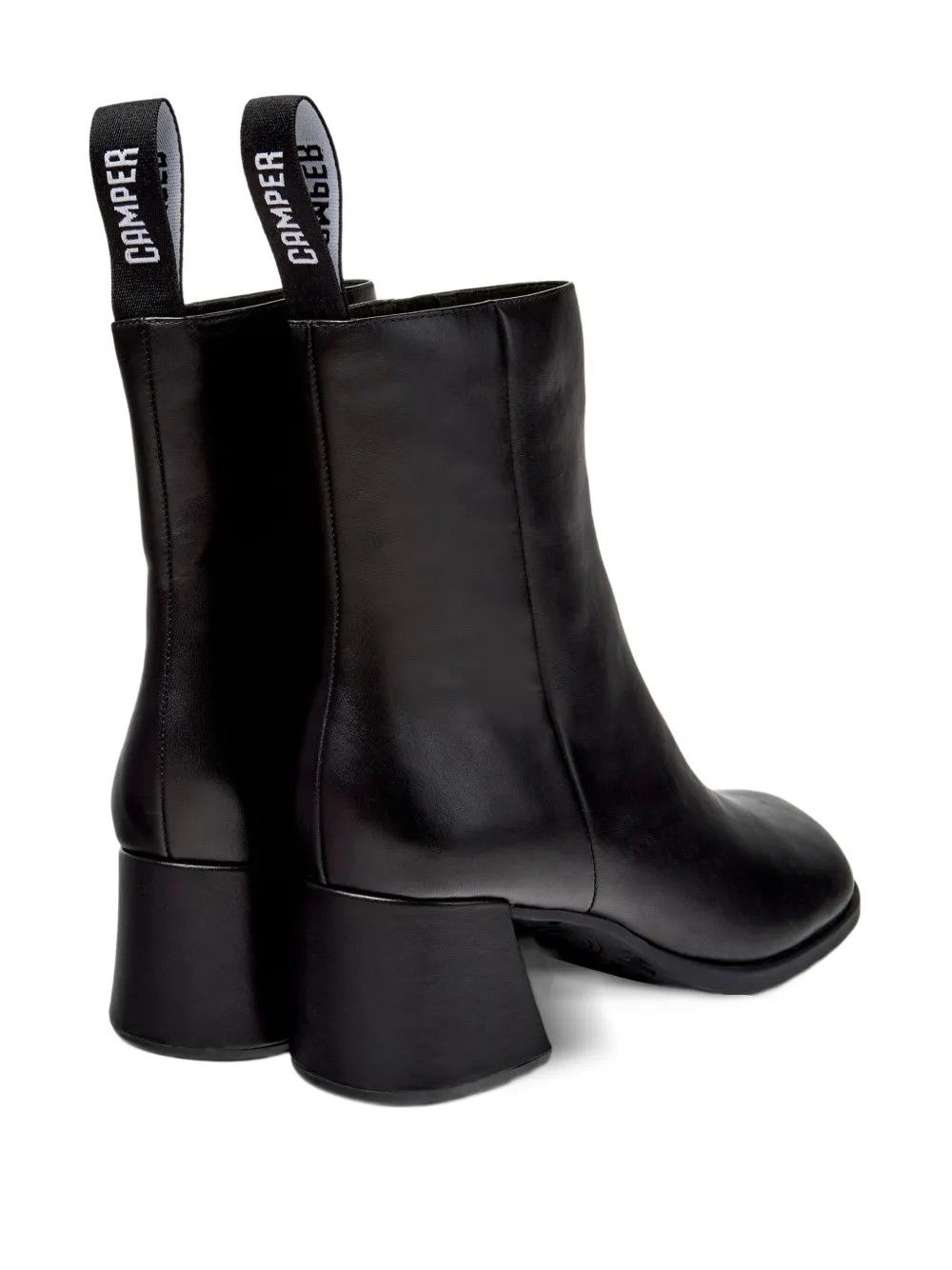 Stivaletti in pelle di vitello con punta tonda e chiusura a zip.Tacco largo da 65mm per unire altezza e comfort durante tutta la giornata.Linguetta posteriore per facilitare la calzata.Fodera in pelle e poliestere riciclato per un tocco sostenibile.Suola in gomma e ABS per leggerezza e resistenza.Design raffinato e funzionale pensato per uno stile deciso.