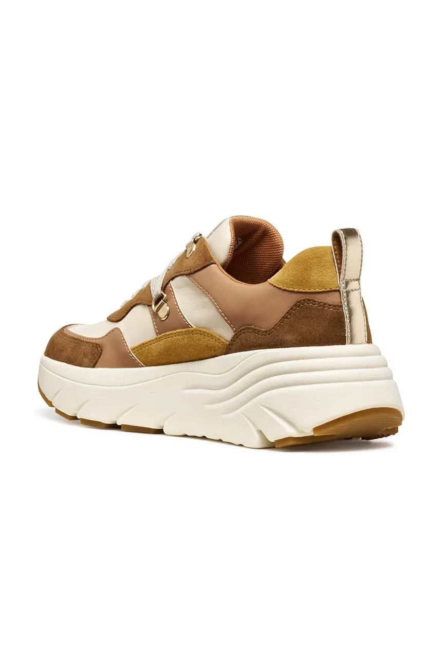 Sneakers Geox leggere e comode,realizzate in camoscio ed ecopelle,perfette per l’uso quotidiano.La tecnologia Geox Respira® garantisce una ventilazione ottimale grazie alla suola a tre strati con perforazioni traspiranti.I lacci classici assicurano una calzata perfetta,mentre la suola in gomma offre resistenza e durata.La piattaforma dona un tocco di stile e la soletta in tessuto assicura comfort e facilità di pulizia.
