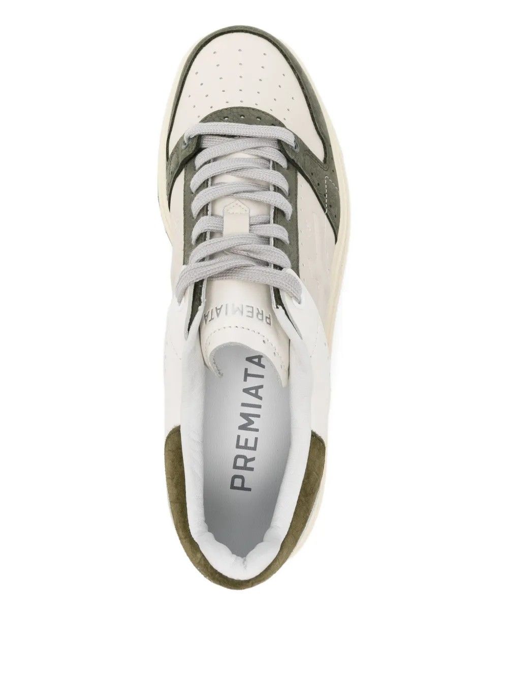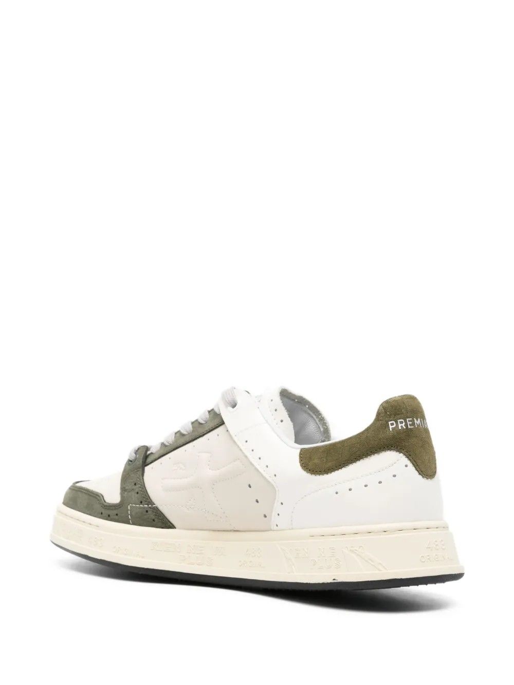 Le sneakers Quinn reinterpretano il mondo sportivo in chiave couture, fondendo eleganza e innovazione. Il design è arricchito da numerosi fori ispirati alle lavorazioni “Brogue”, omaggio alle radici classiche di Premiata. Un modello ricco di dettagli, pensato per uno stile sofisticato e contemporaneo.