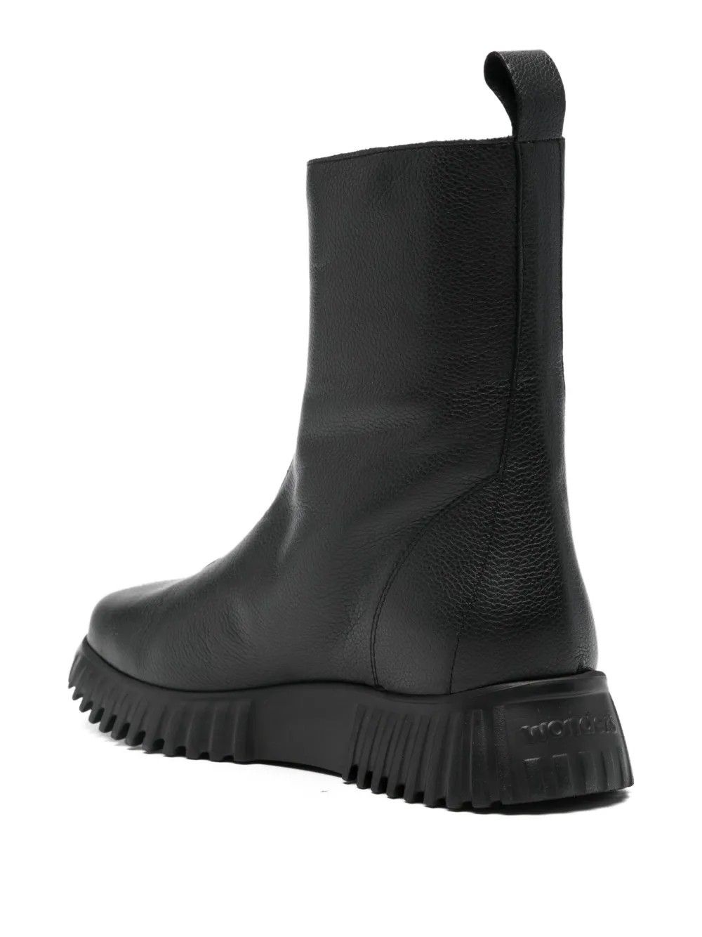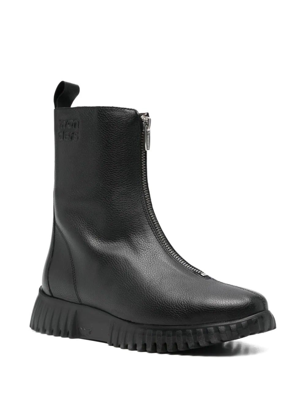 Stivali Wonders in pelle con finitura in rilievo e punta tonda per un look deciso e contemporaneo.Chiusura laterale con zip e logo goffrato per un tocco distintivo.Suola rigida in gomma che garantisce stabilitĂ e comfort, ideale per affrontare la stagione con stile.