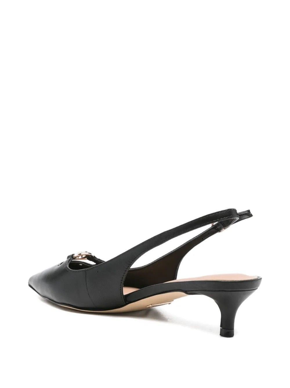 Slingback della famiglia Jessah realizzato in vera pelle con punta affusolata e cinturino alla caviglia per una chiusura sicura.Il tacco di 4 cm garantisce eleganza e comfort, mentre il dettaglio con scritta logo frontale aggiunge un tocco distintivo.Il sottopiede in pelle e la fodera interna in tessuto assicurano traspirabilitĂ , completati da una suola in gomma ammortizzata per una camminata confortevole.